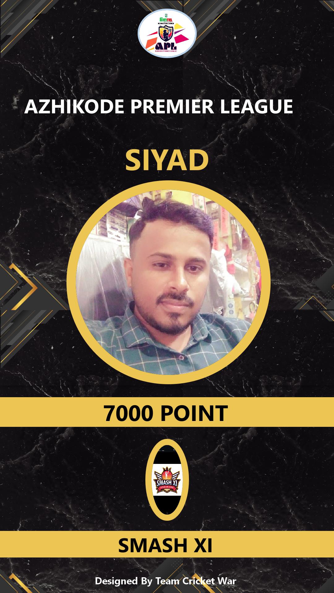 BOWLING ALLROUNDER, AGE : 29 CHERANALLORE Bid Amount : 1000 Team : SMASH XI Download ID Card VIEW PROFILE |