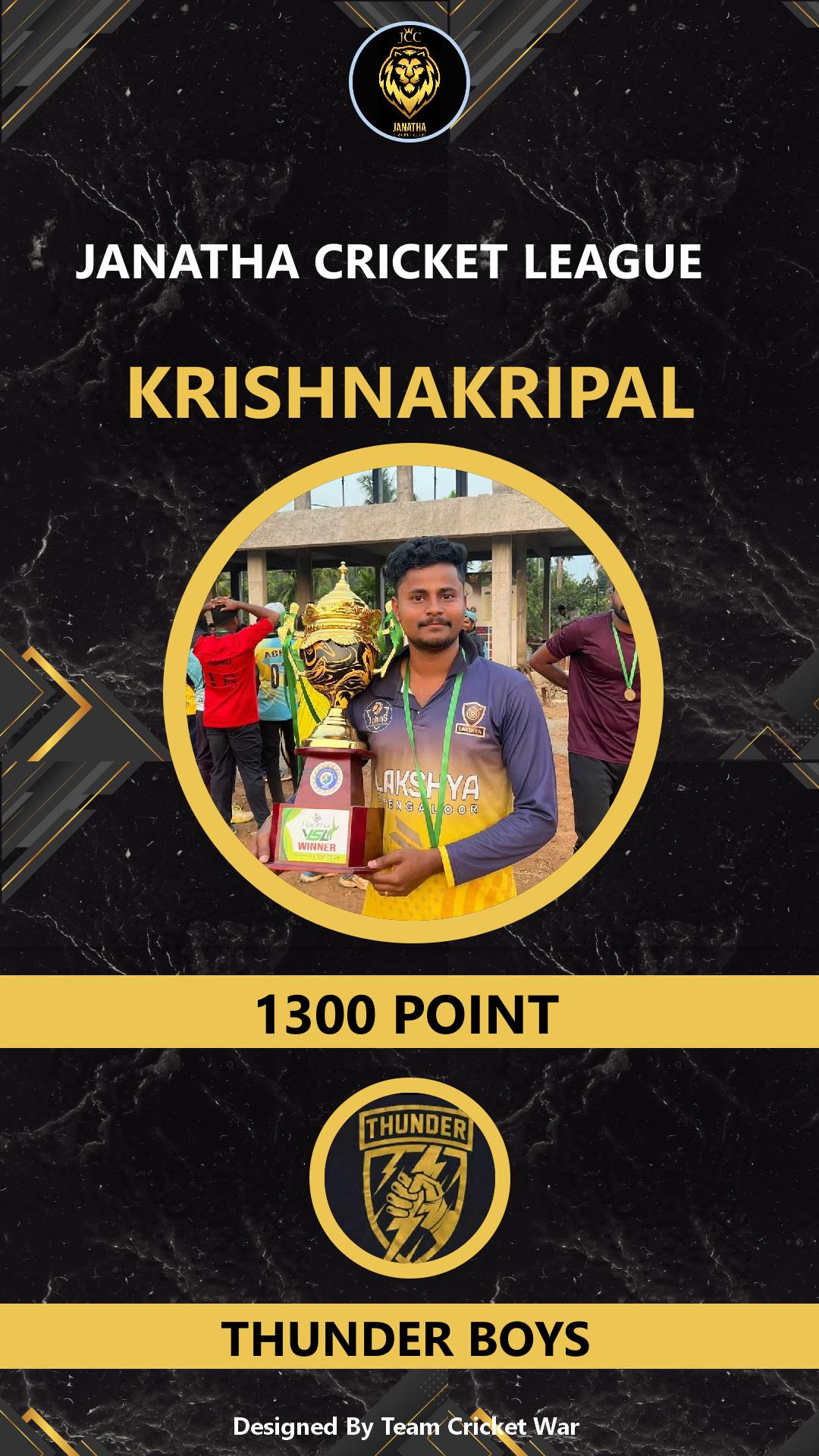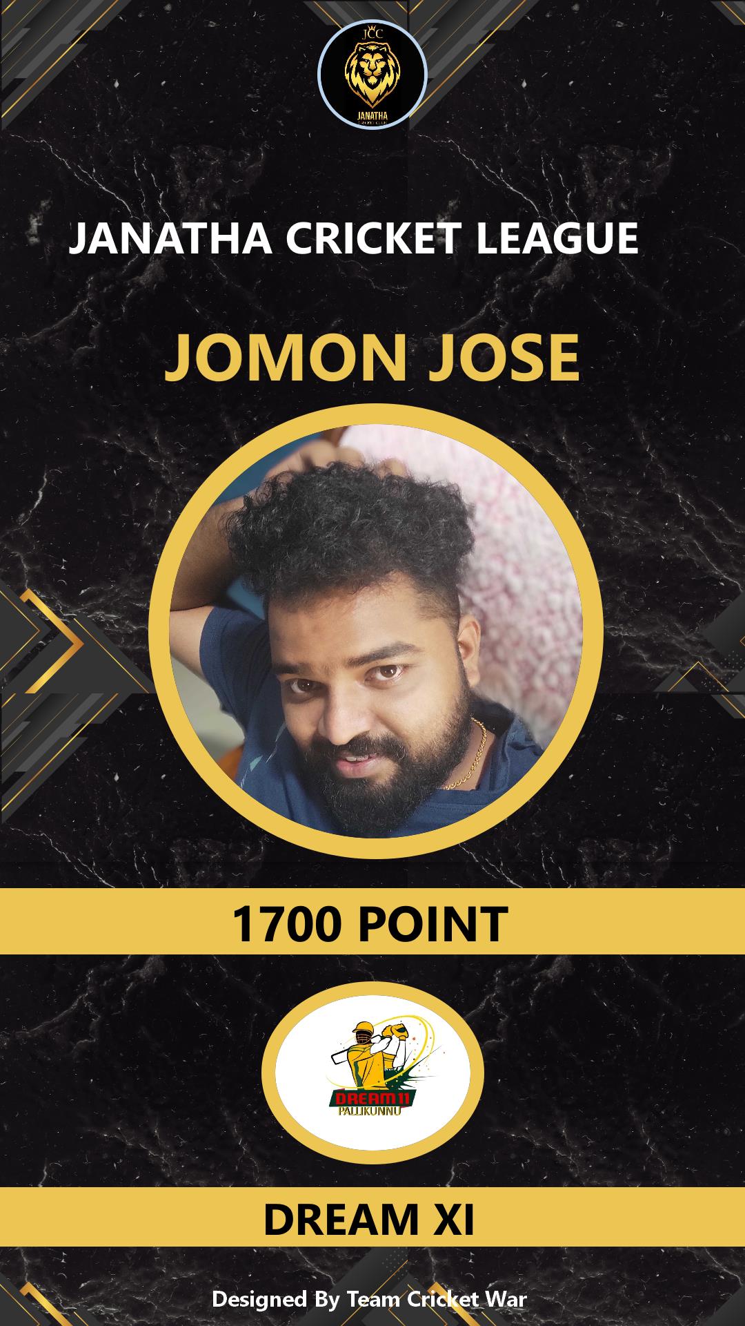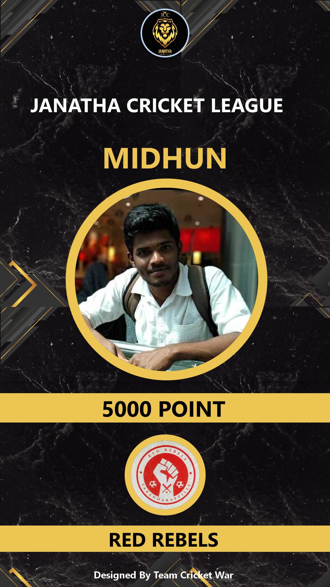 Batting Allrounder, AGE : 31 Varandarapppilly Bid Amount : 9000 Team : JANATHA VARANDARAPPILLY Download ID Card VIEW PROFILE |