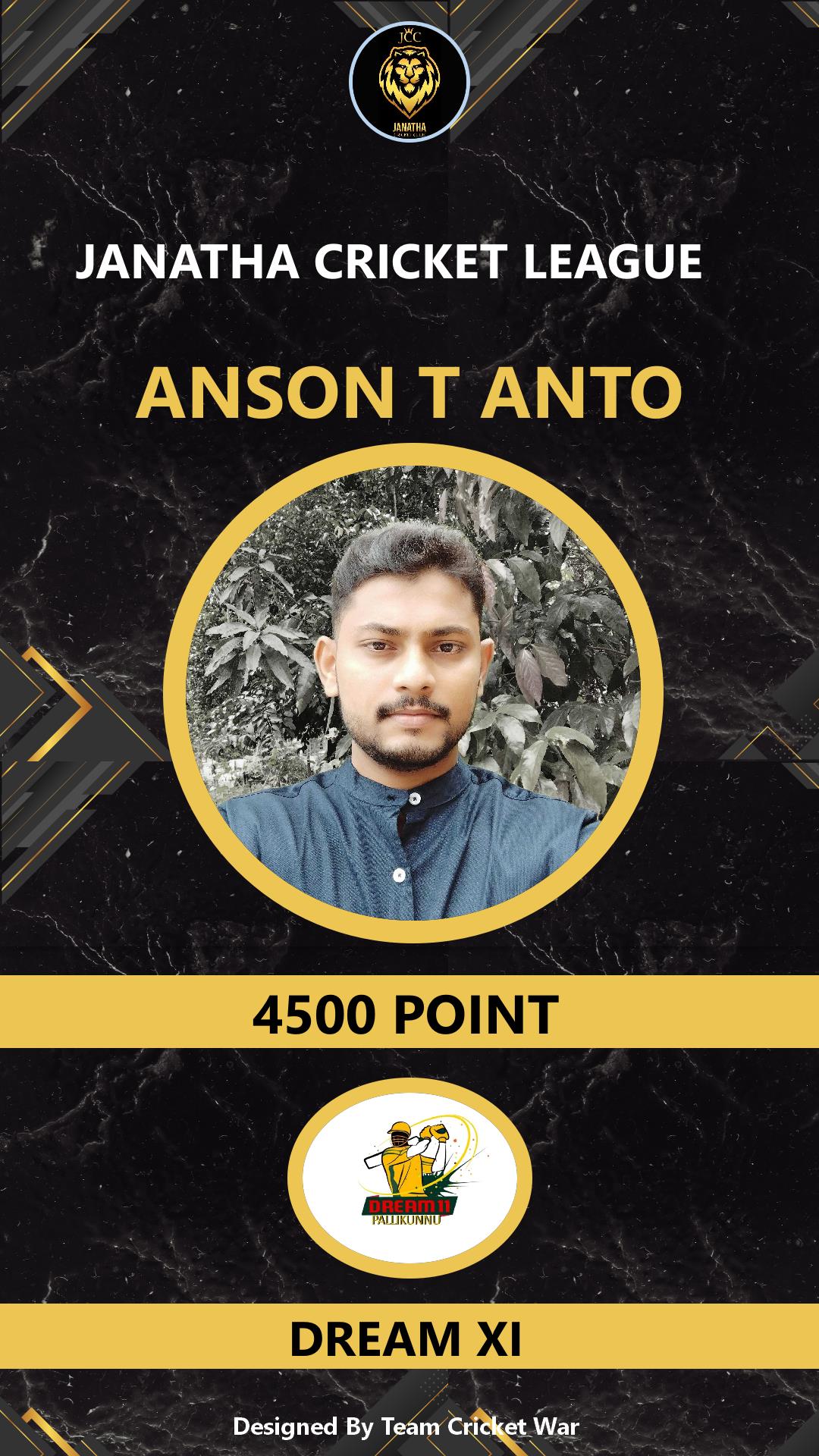 Allrounder, AGE : 28 Pallikunnu Bid Amount : 4500 Team : DREAM XI Download ID Card VIEW PROFILE |