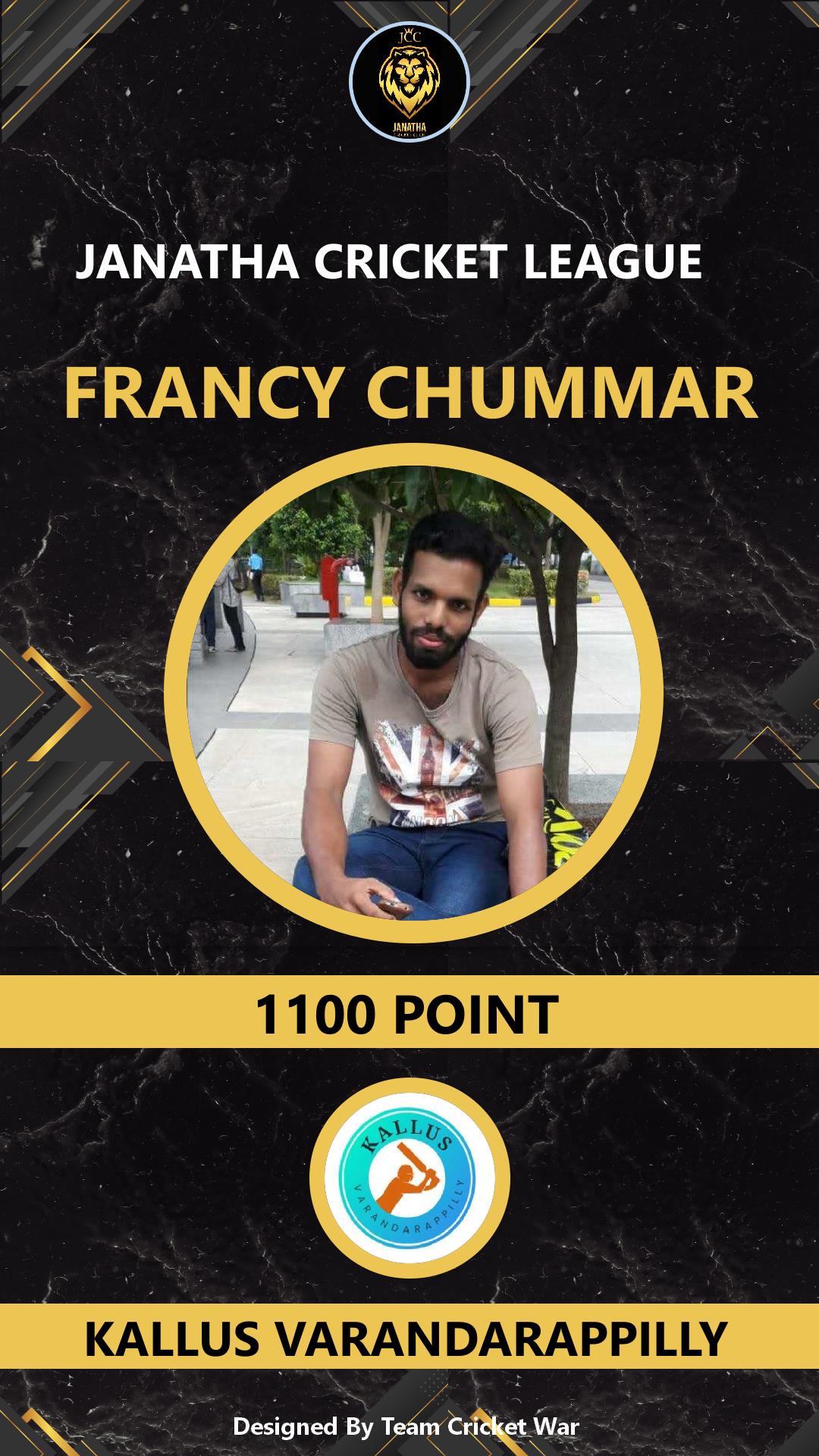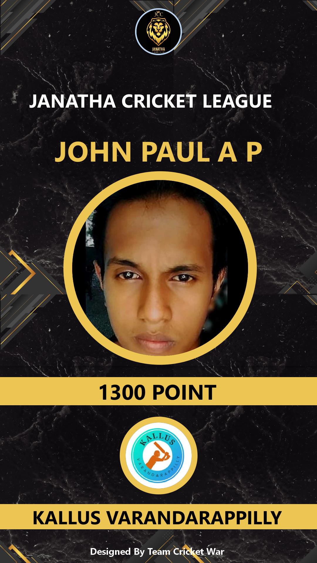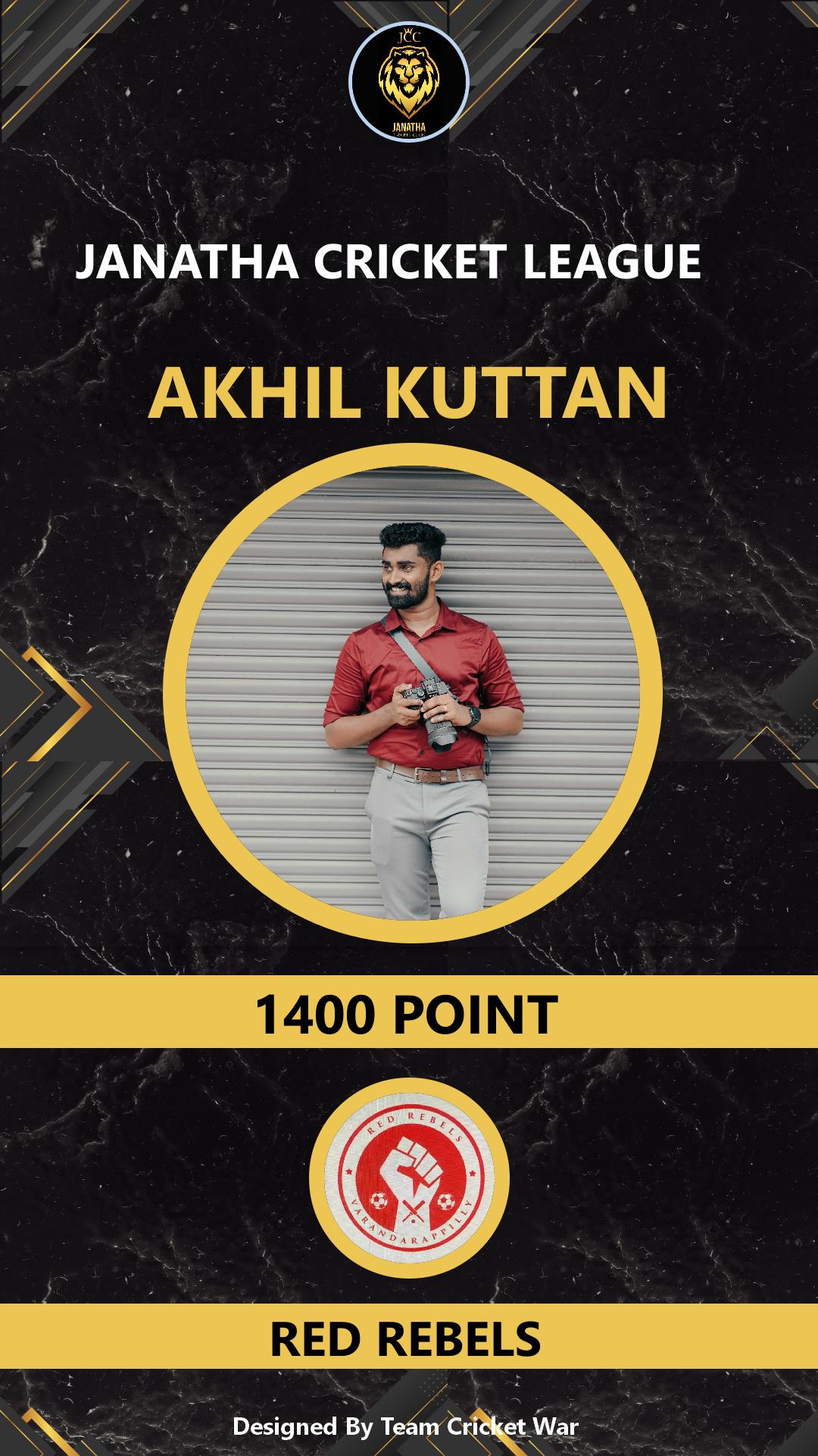 Bowling Allrounder, AGE : 3 Varandharappilly Bid Amount : 1100 Team : JANATHA VARANDARAPPILLY Download ID Card VIEW PROFILE |