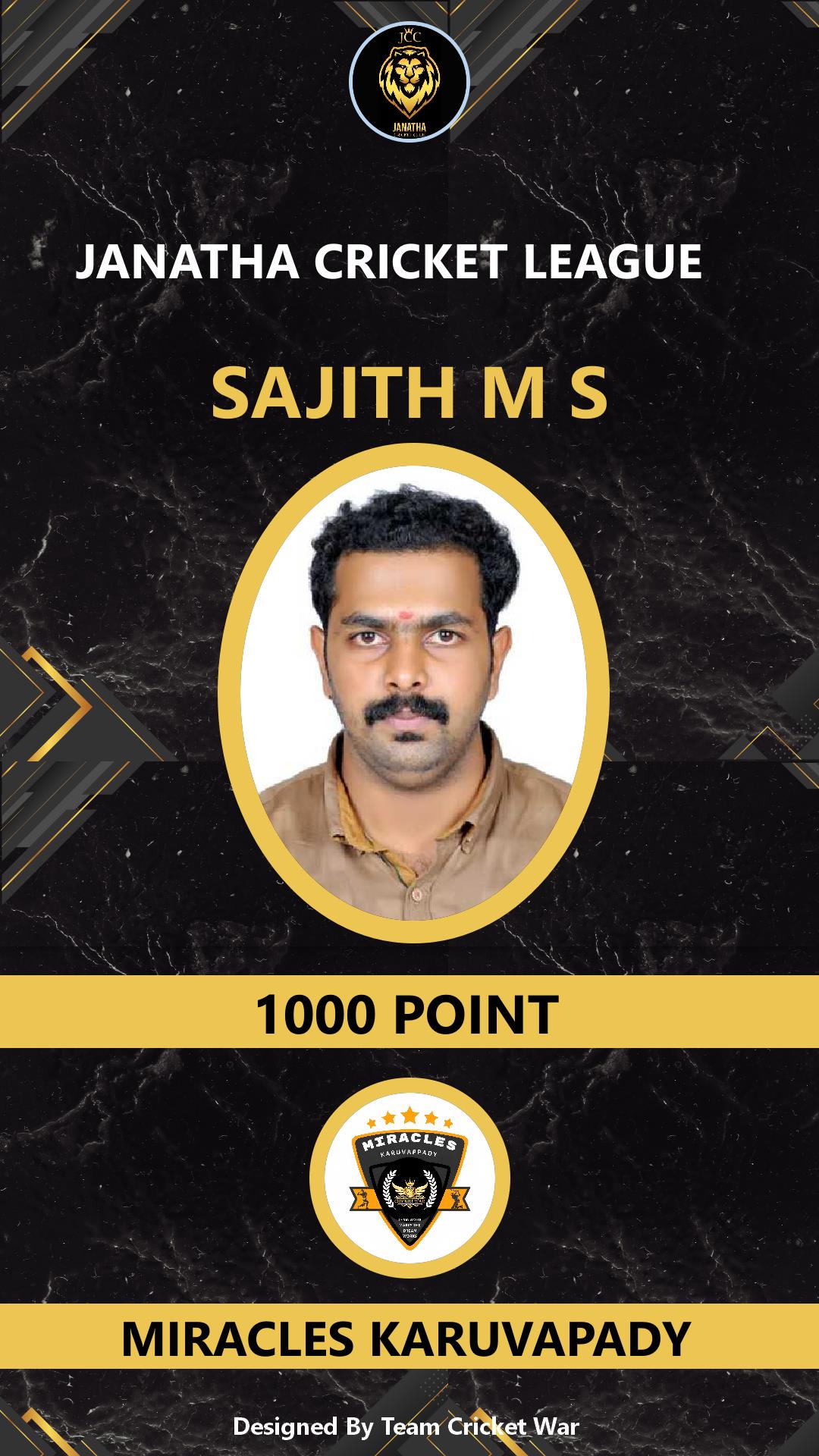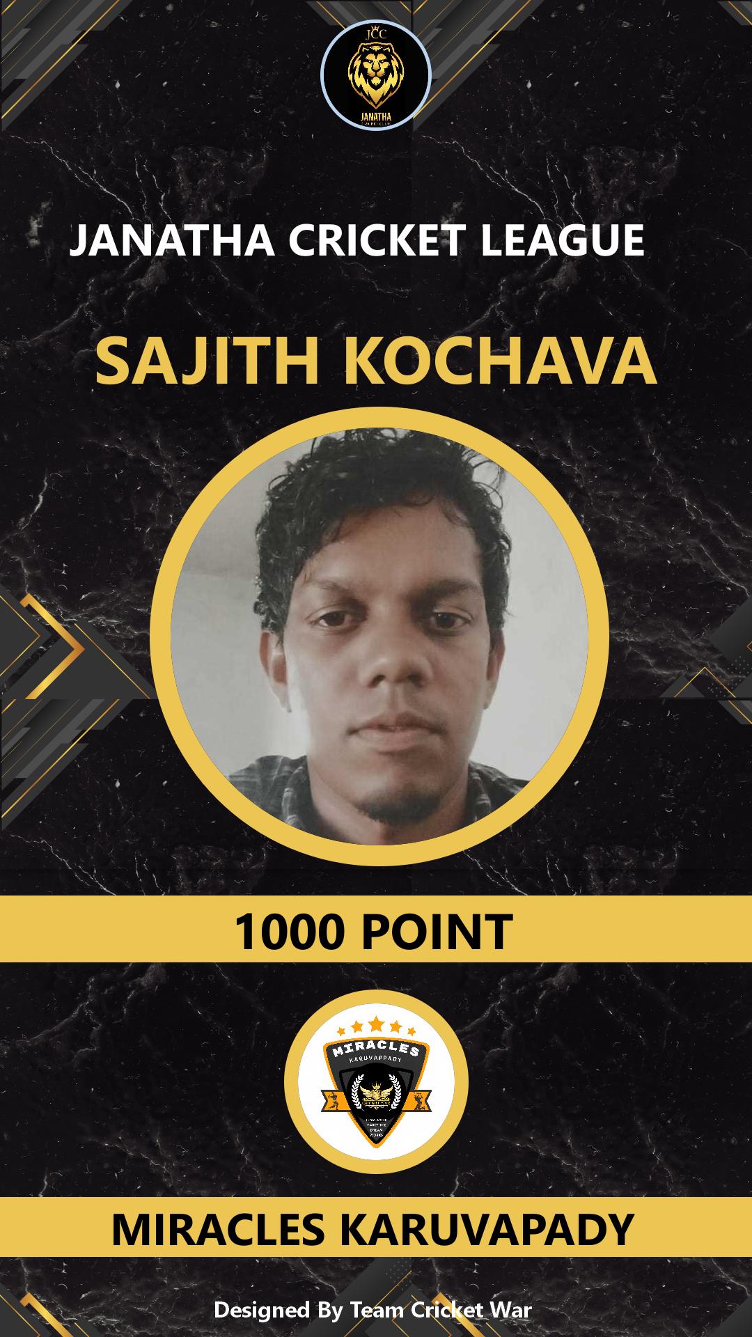 Batting Allrounder, AGE : 29 Kalakkallu Bid Amount : 4500 Team : MIRACLES KARUVAPADY Download ID Card |