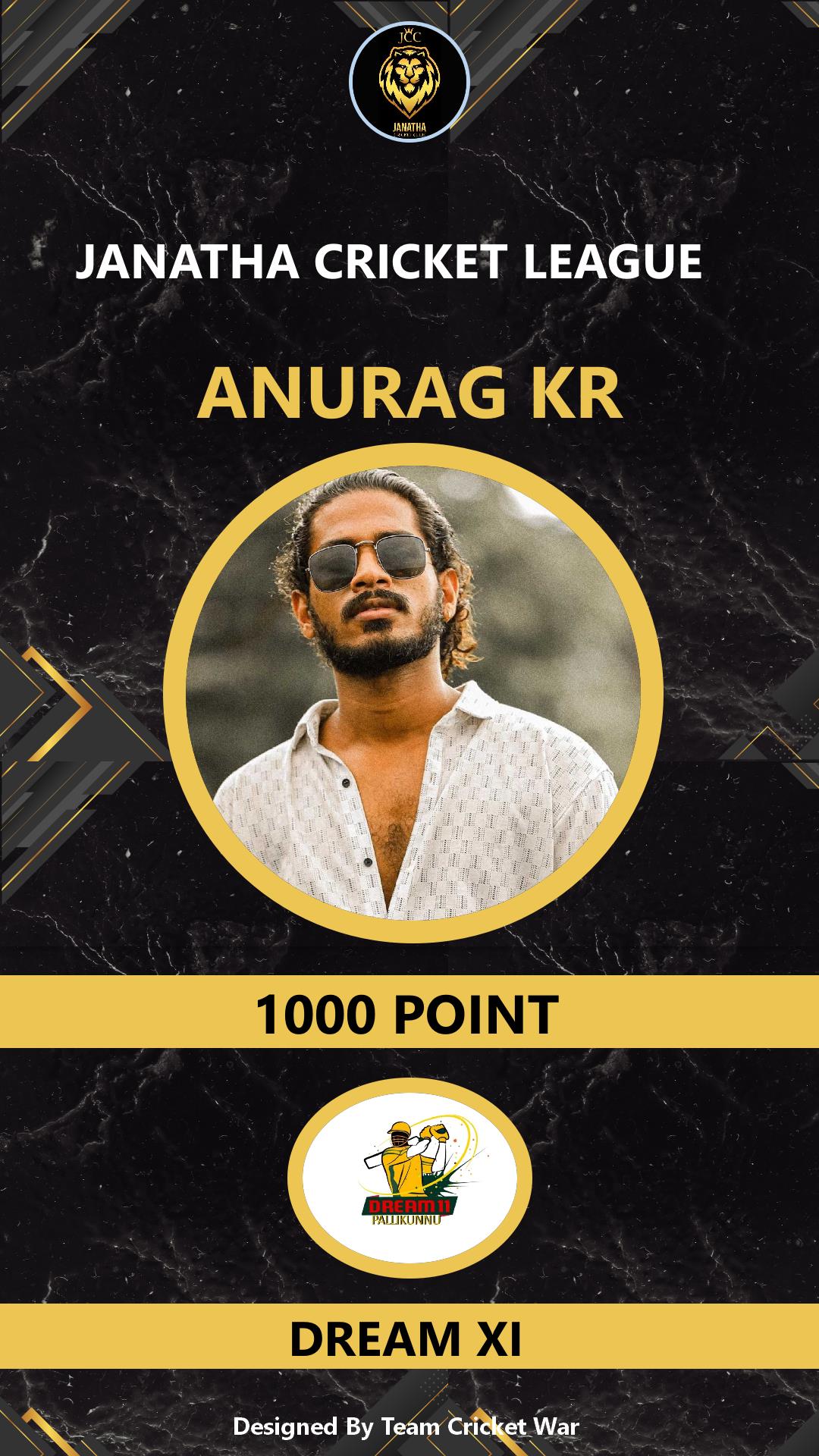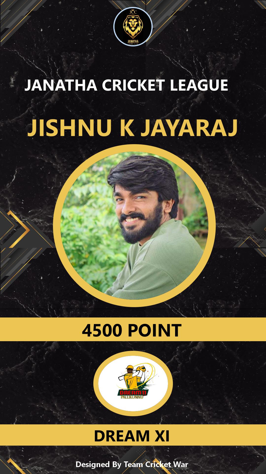 Allrounder, AGE : 28 Pallikkunnu Bid Amount : 5000 Team : DREAM XI Download ID Card VIEW PROFILE |