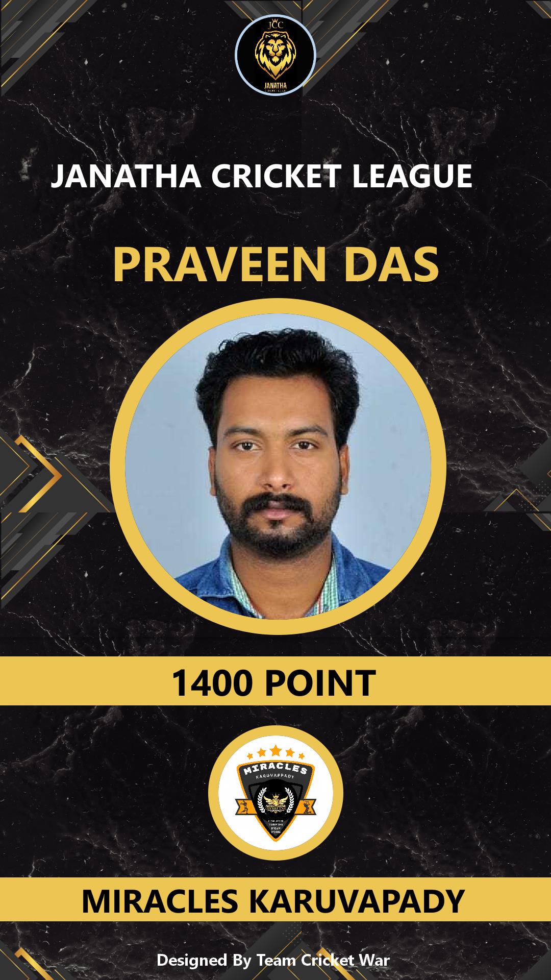 Batsman, AGE : 29 Pallikunnu Bid Amount : 1600 Team : JANATHA VARANDARAPPILLY Download ID Card VIEW PROFILE |