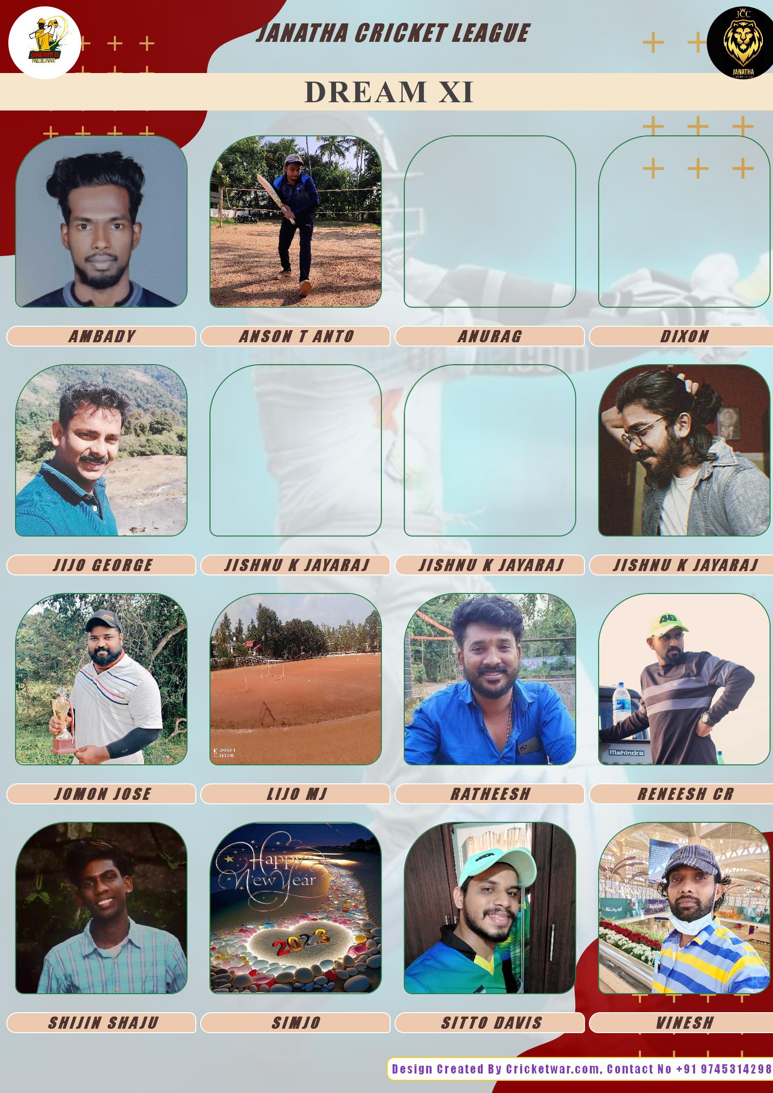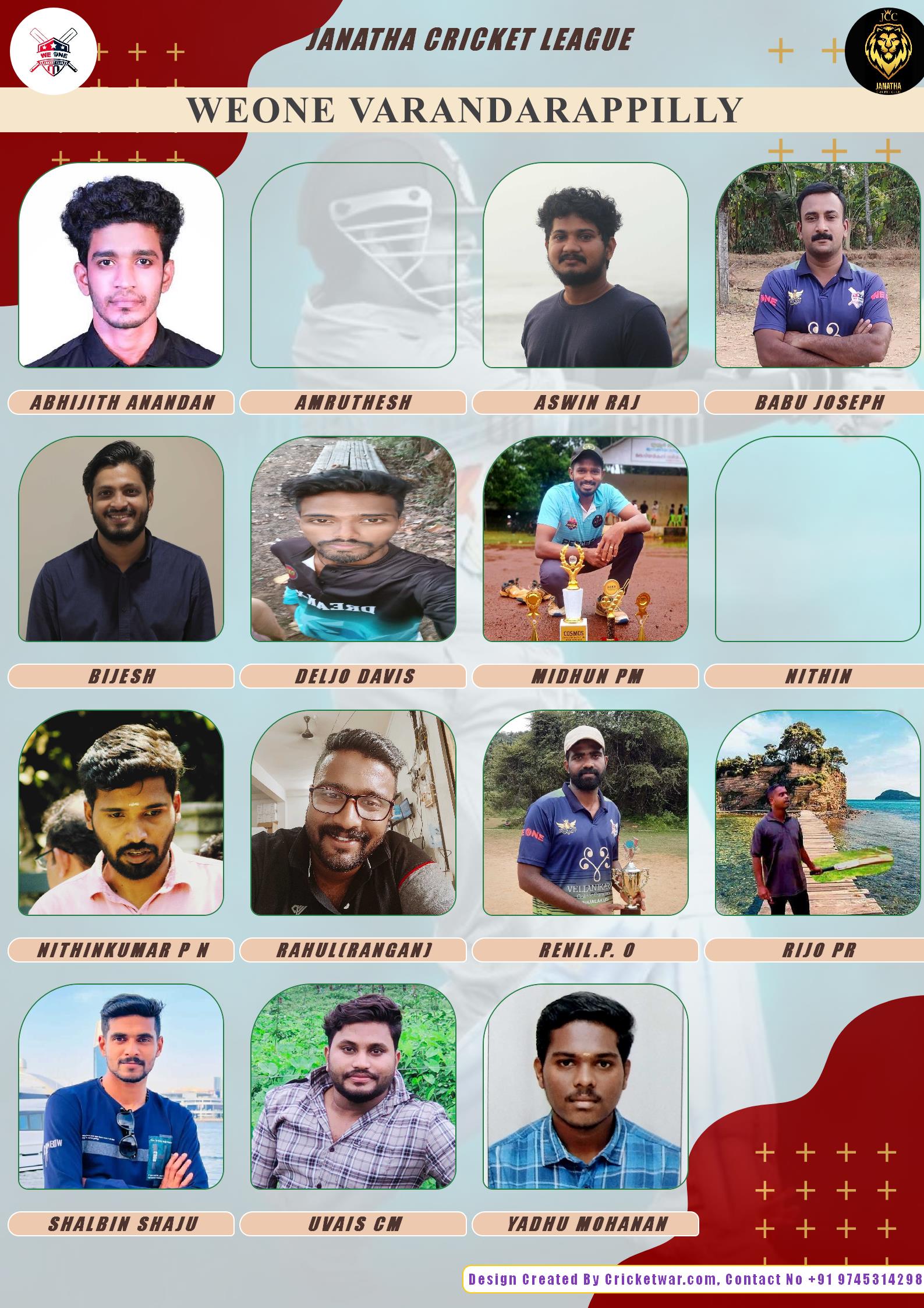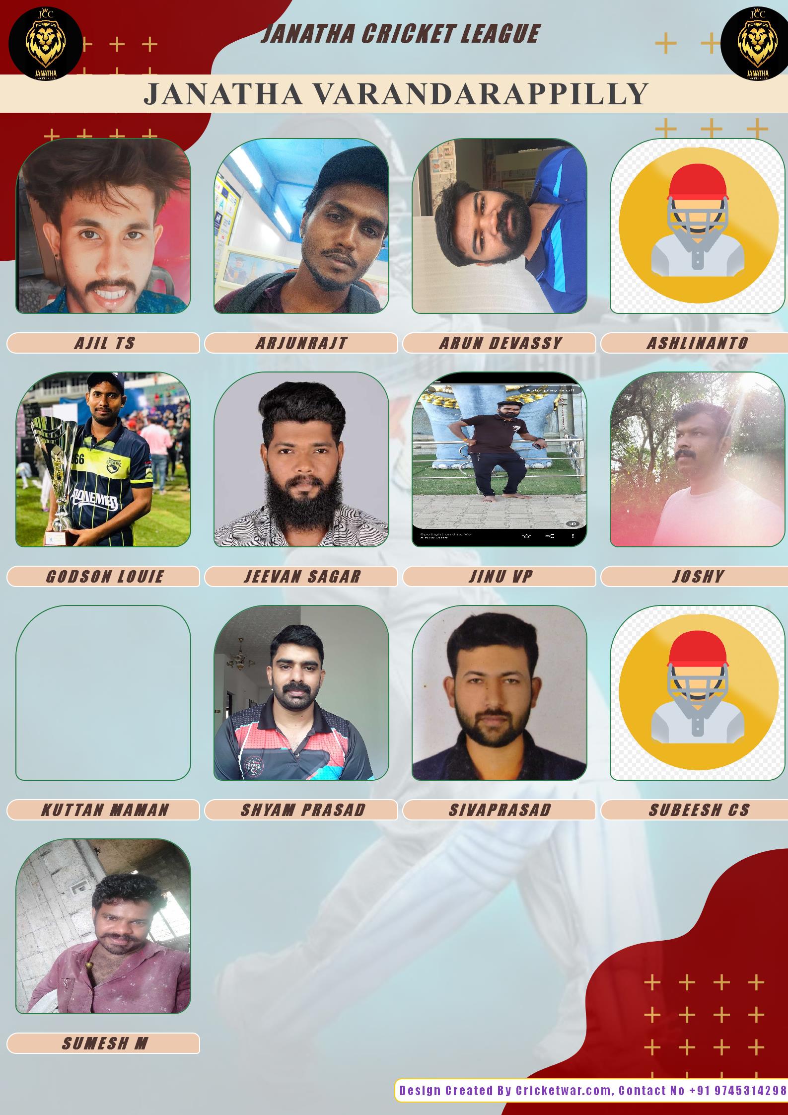Allrounder, AGE : 35 VARANDARAPPILLY Bid Amount : 5000 Team : JANATHA VARANDARAPPILLY Download ID Card VIEW PROFILE |