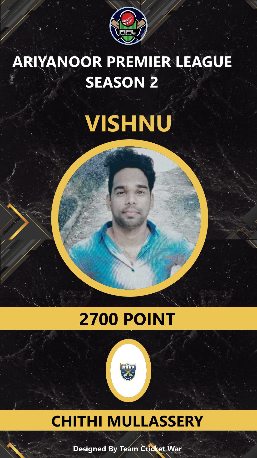 ALLROUNDER, AGE : 29 VENKITANGU Bid Amount : 1600 Team : CHITHI MULLASSERY Download ID Card |