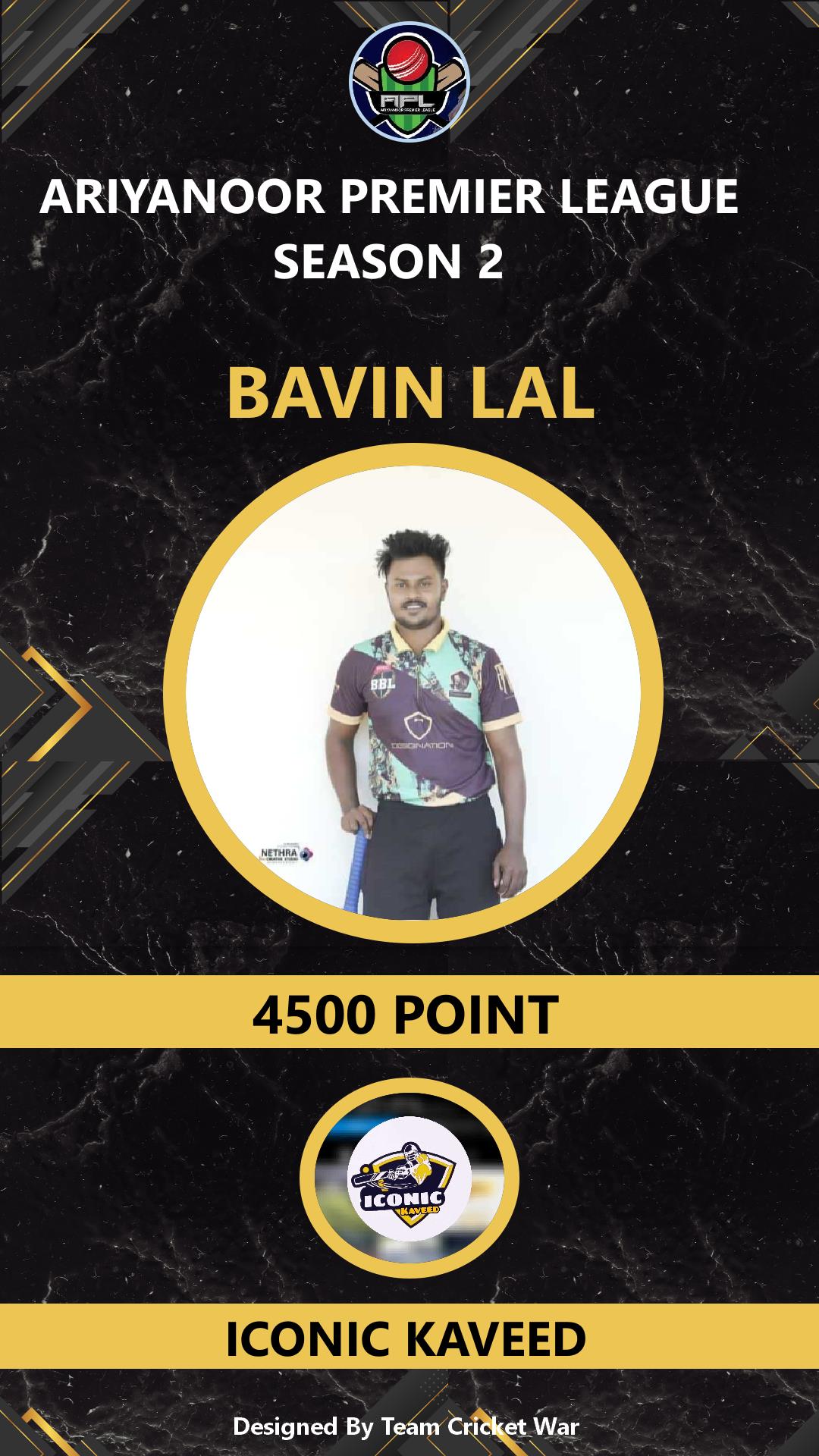 ALLROUNDER, AGE : 39 GURUVAYOOR Bid Amount : 2400 Team : ICONIC KAVEED Download ID Card VIEW PROFILE |
