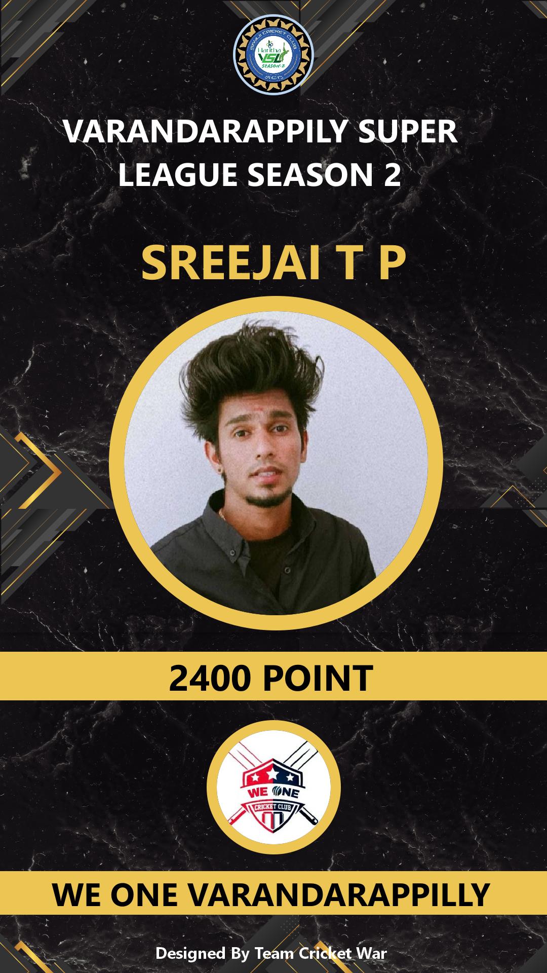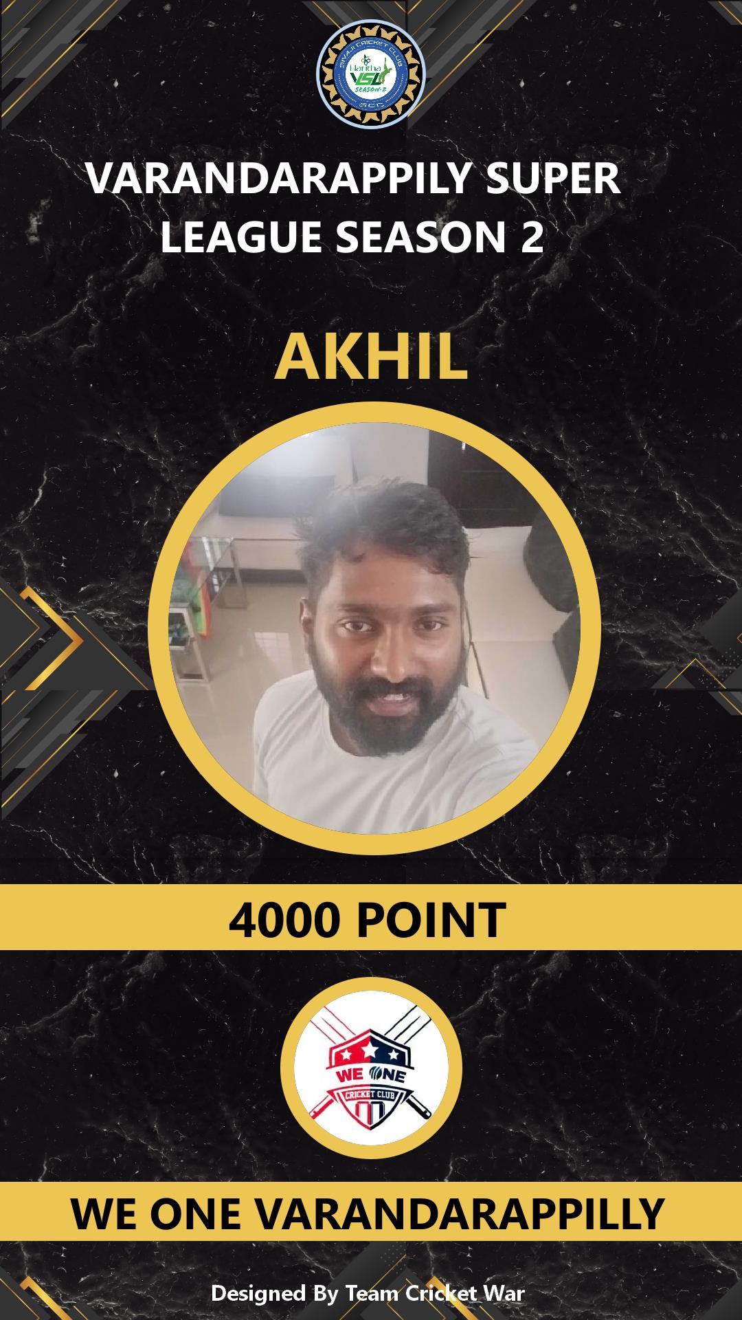 Allrounder, AGE : 28 Nandipulam Bid Amount : 2400 Team : WE ONE VARANDARAPPILLY Download ID Card VIEW PROFILE |