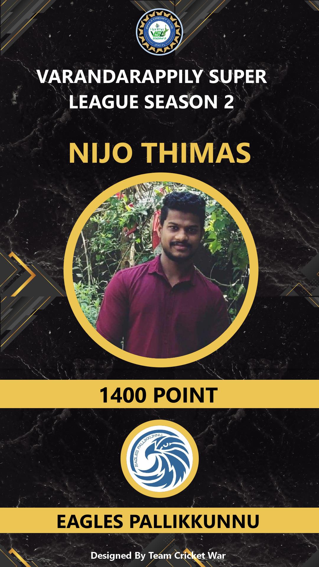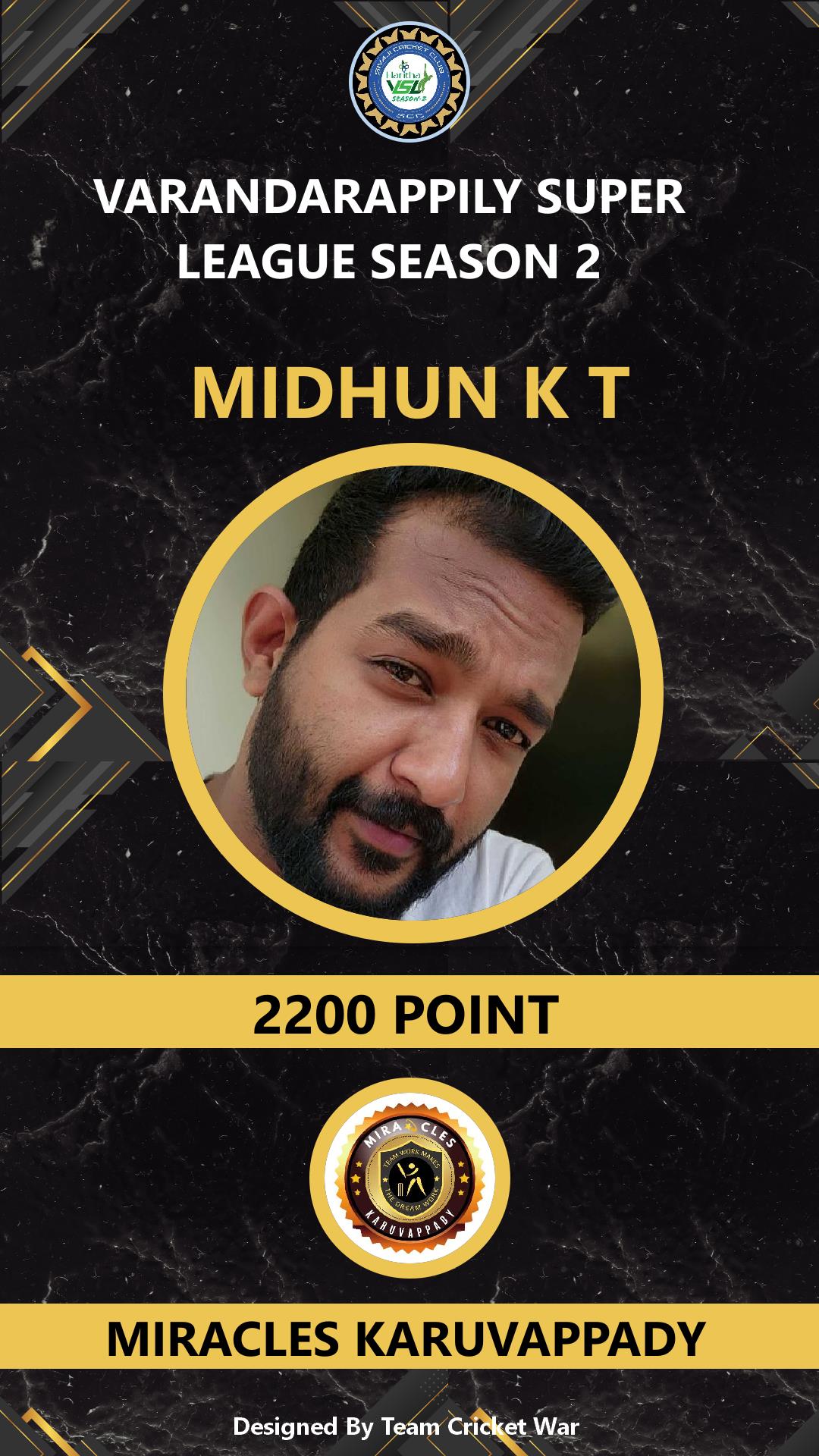 Bowler, AGE : 27 Nandhipulam Bid Amount : 1000 Team : JANATHA VARANDARAPPILLY Download ID Card VIEW PROFILE |