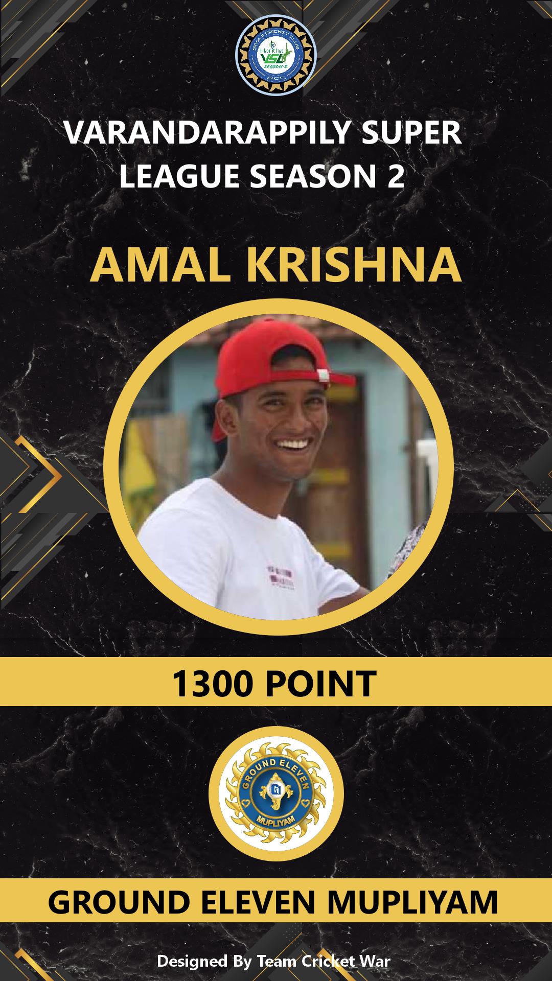 Allrounder, AGE : 2 Mupliyam Bid Amount : 1000 Team : GROUND ELEVEN MUPLIYAM Download ID Card VIEW PROFILE |