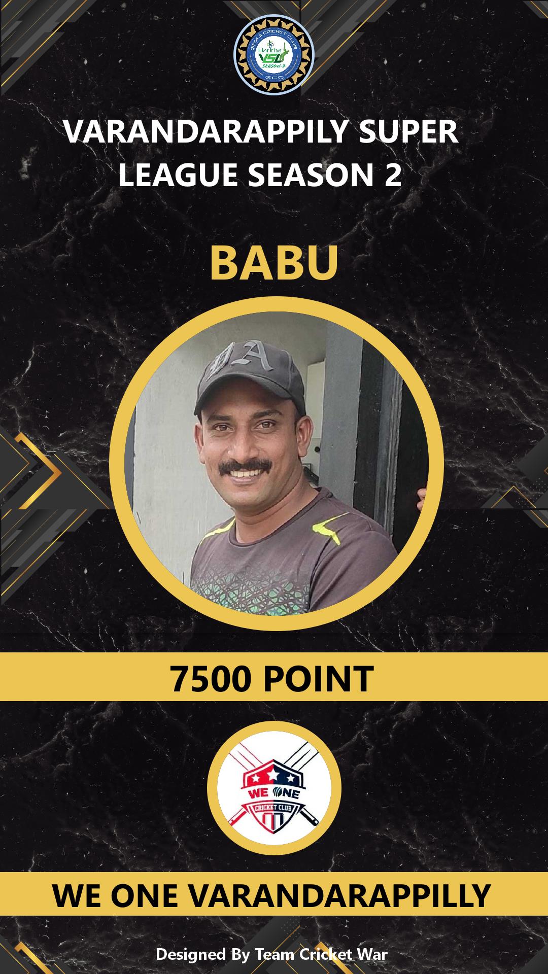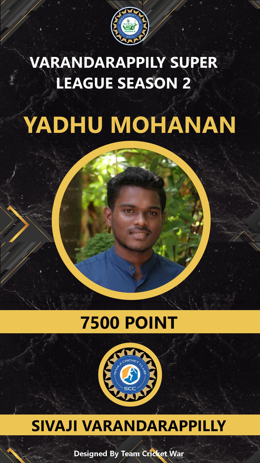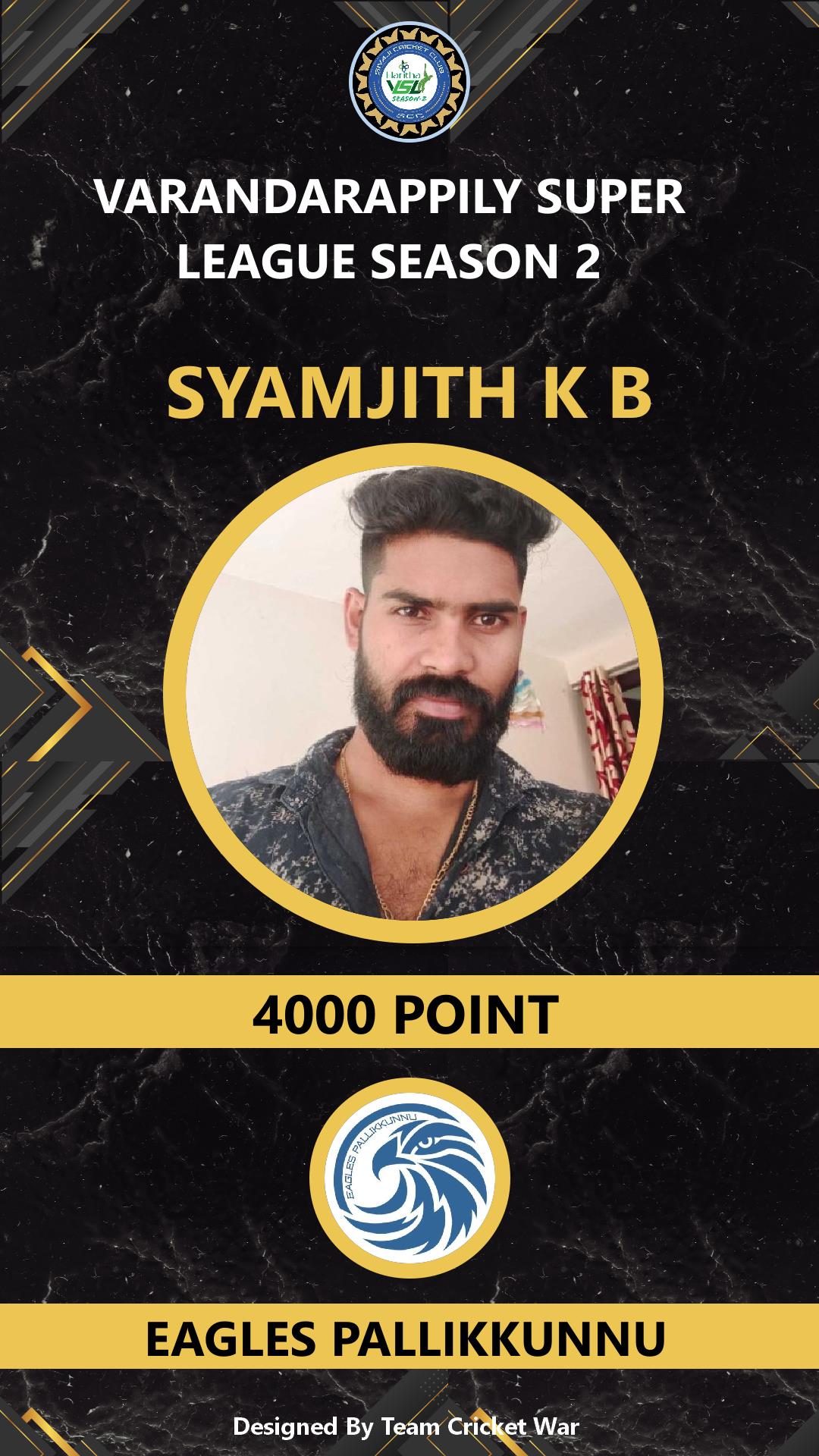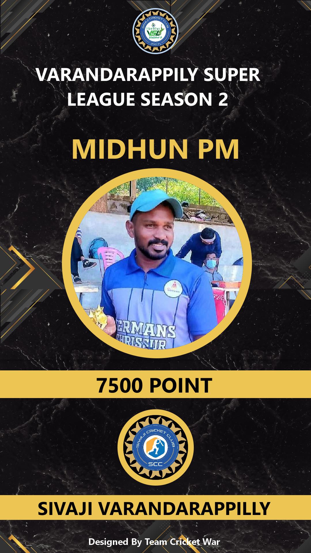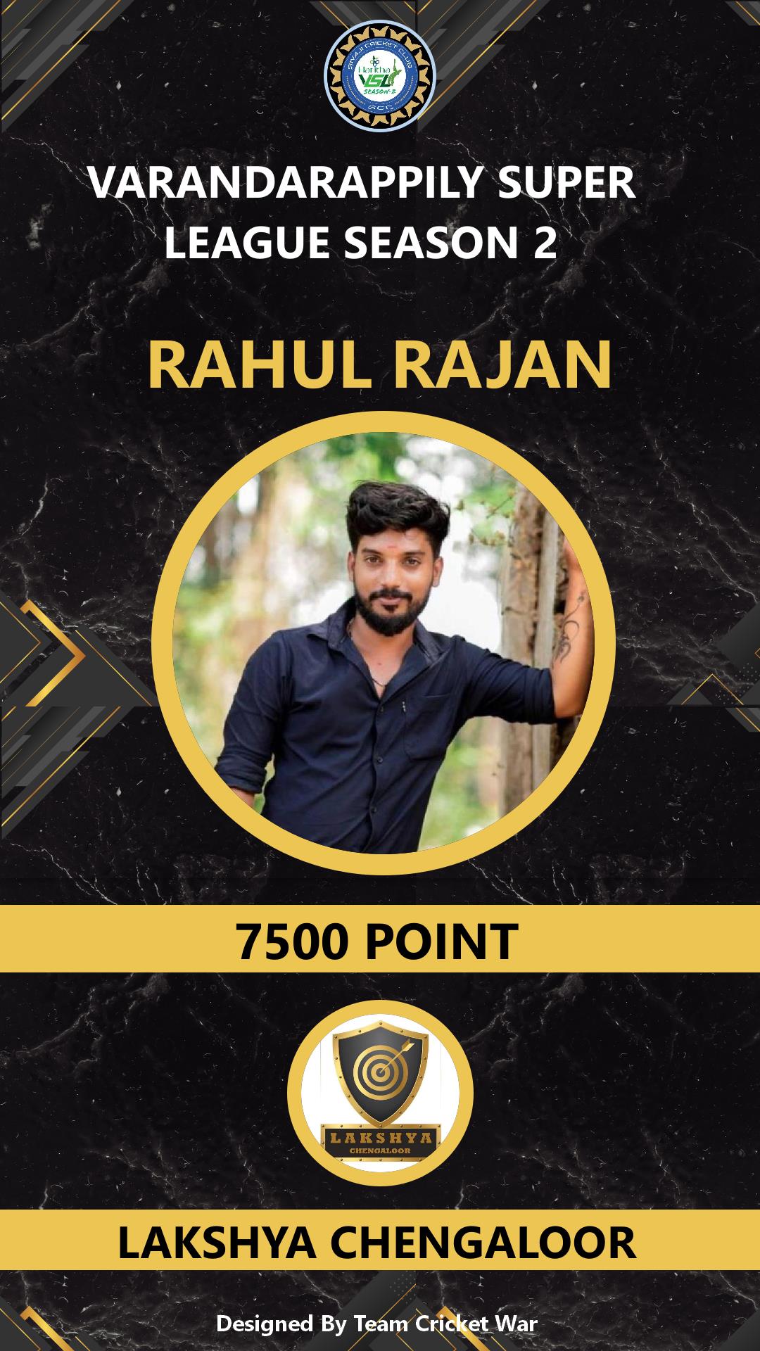 Allrounder, AGE : 34 Pallikkunnu Bid Amount : 7500 Team : EQUALS VARANDARAPPILLY Download ID Card VIEW PROFILE |