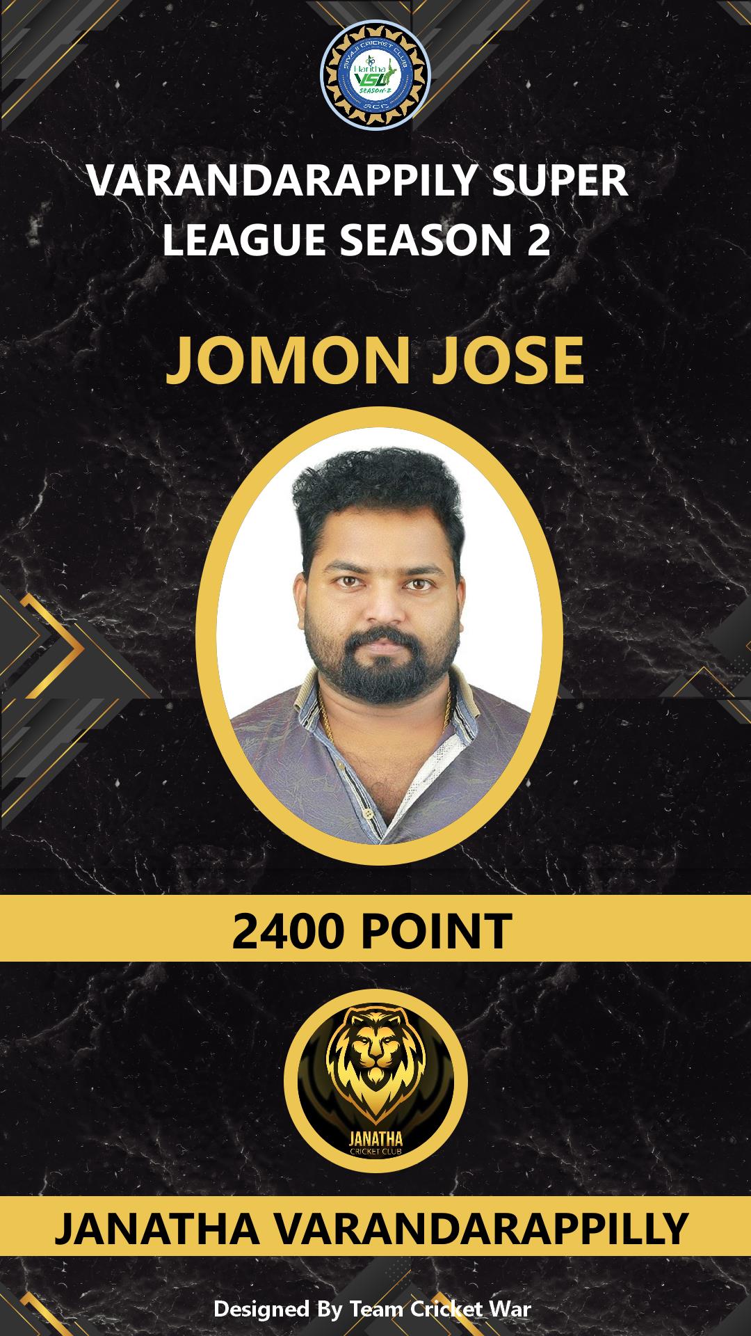 Batting Allrounder, AGE : 42 Varandarappilly Bid Amount : 1500 Team : JANATHA VARANDARAPPILLY Download ID Card VIEW PROFILE |