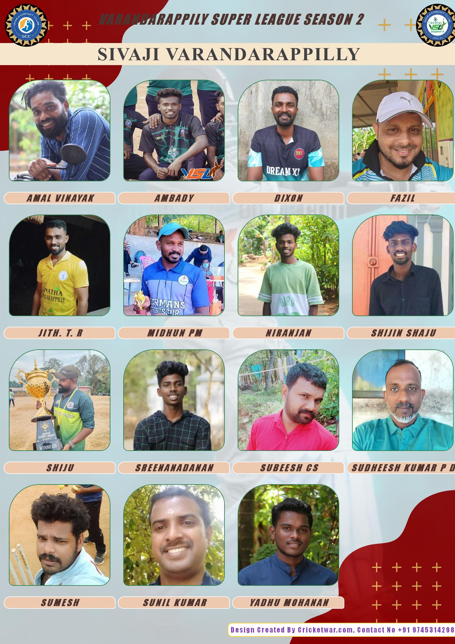 Allrounder, AGE : 34 Varandarappilly Bid Amount : 3000 Team : SIVAJI VARANDARAPPILLY Download ID Card VIEW PROFILE |
