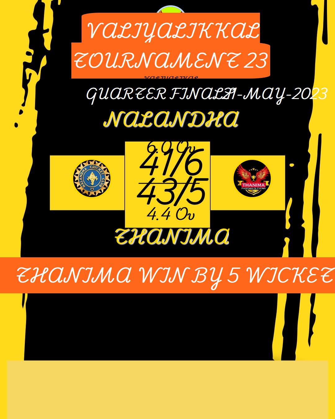 THANIMA WIN BY 5 WICKET