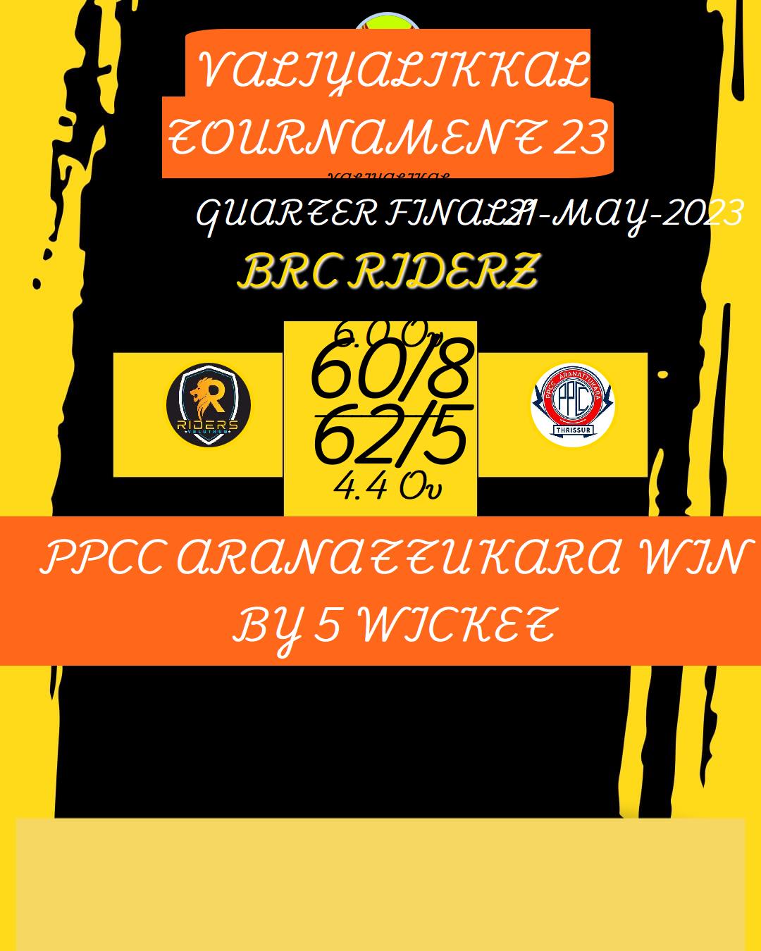 PPCC ARANATTUKARA WIN BY 5 WICKET