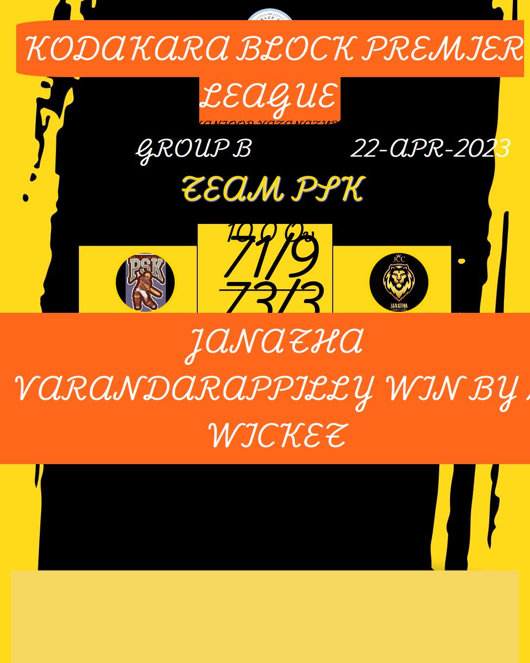 JANATHA VARANDARAPPILLY WIN BY 7 WICKET