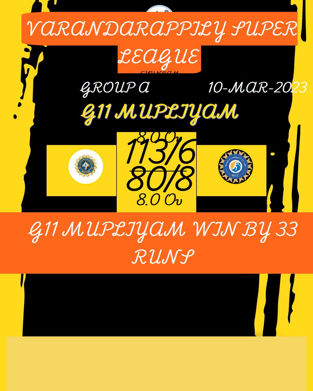G11 MUPLIYAM WIN BY 33 RUNS