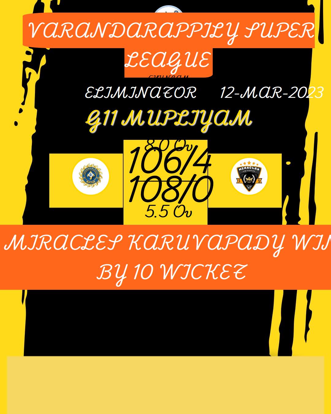 MIRACLES KARUVAPADY WIN BY 10 WICKET