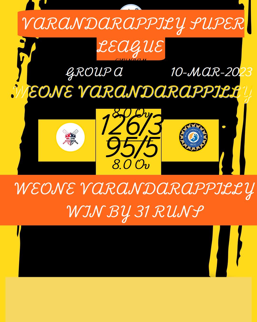 WEONE VARANDARAPPILLY WIN BY 31 RUNS