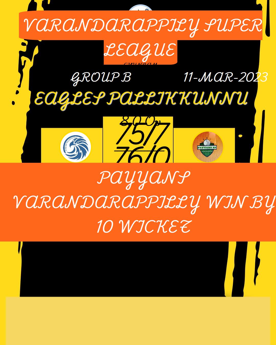 PAYYANS VARANDARAPPILLY WIN BY 8 WICKET