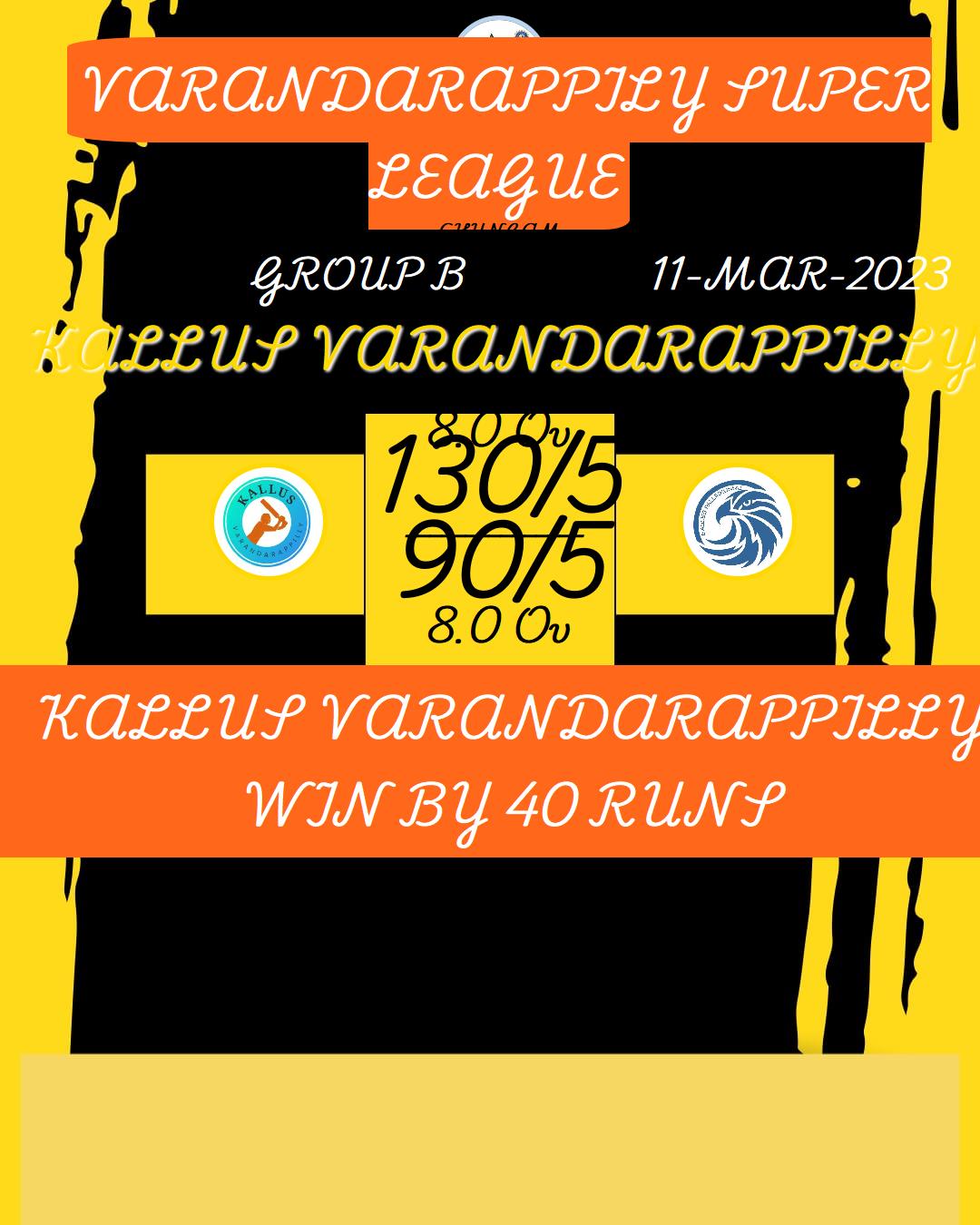 KALLUS VARANDARAPPILLY WIN BY 40 RUNS