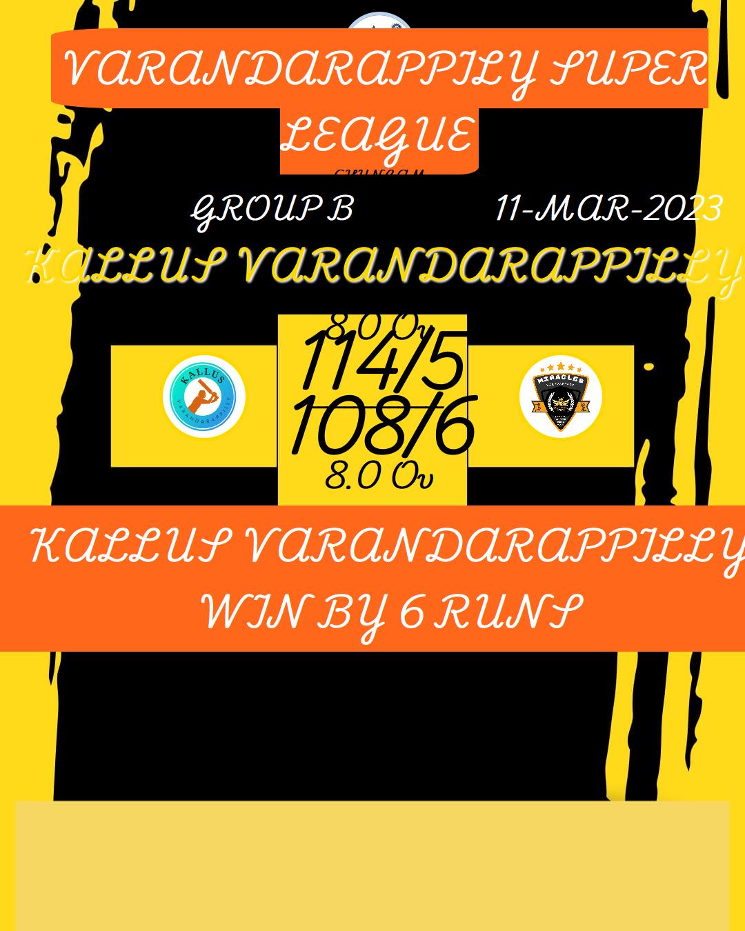 KALLUS VARANDARAPPILLY WIN BY 6 RUNS