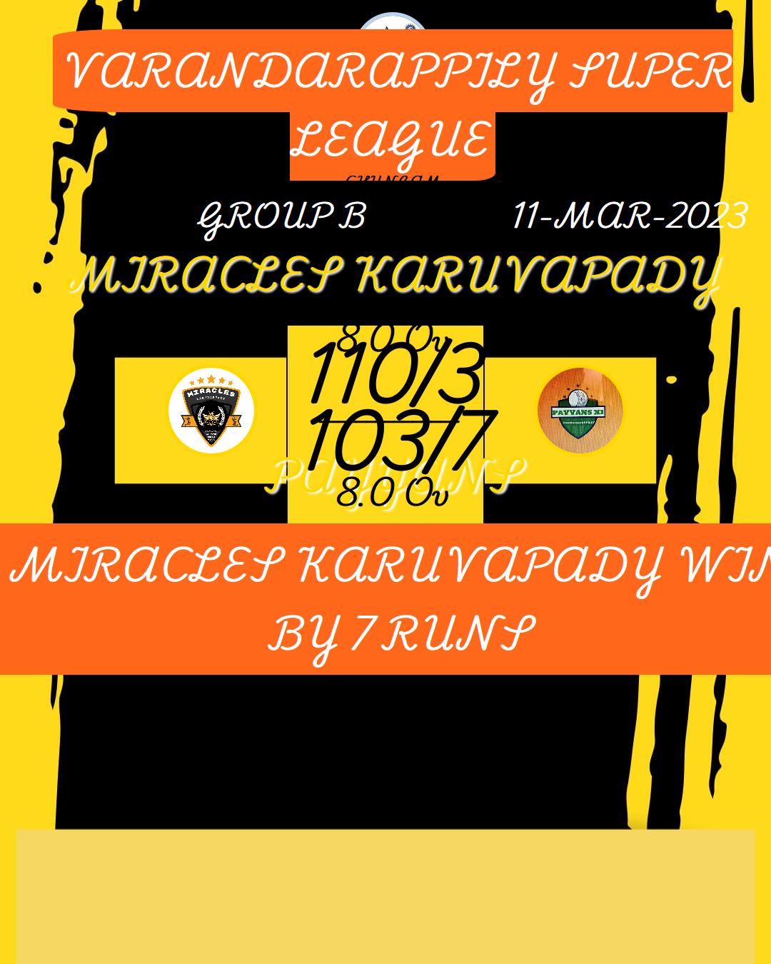 MIRACLES KARUVAPADY WIN BY 7 RUNS