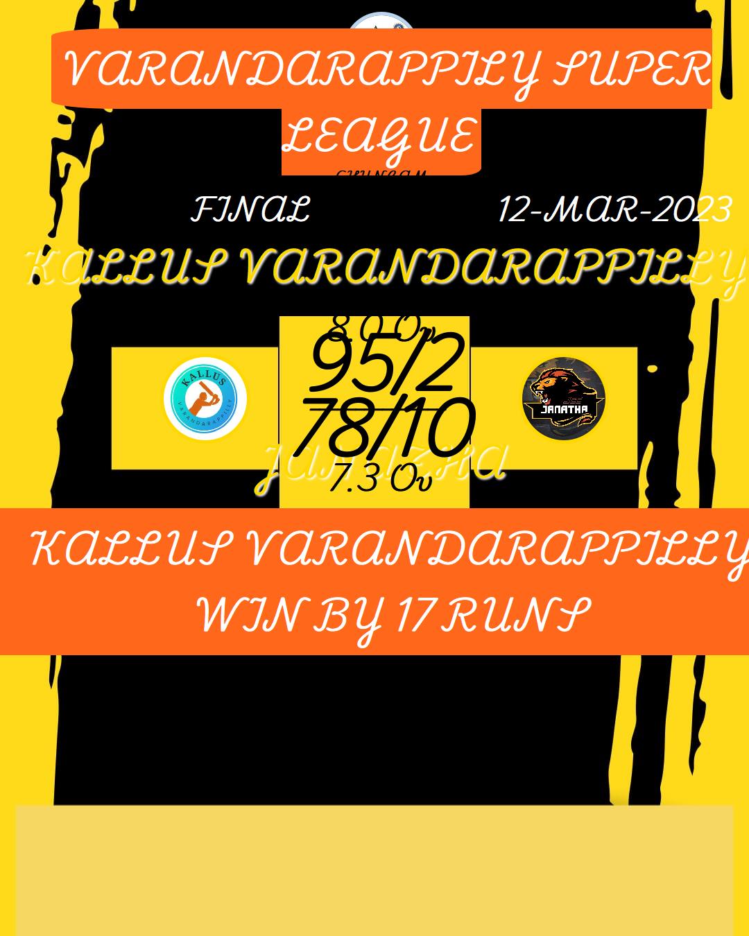 KALLUS VARANDARAPPILLY WIN BY 17 RUNS