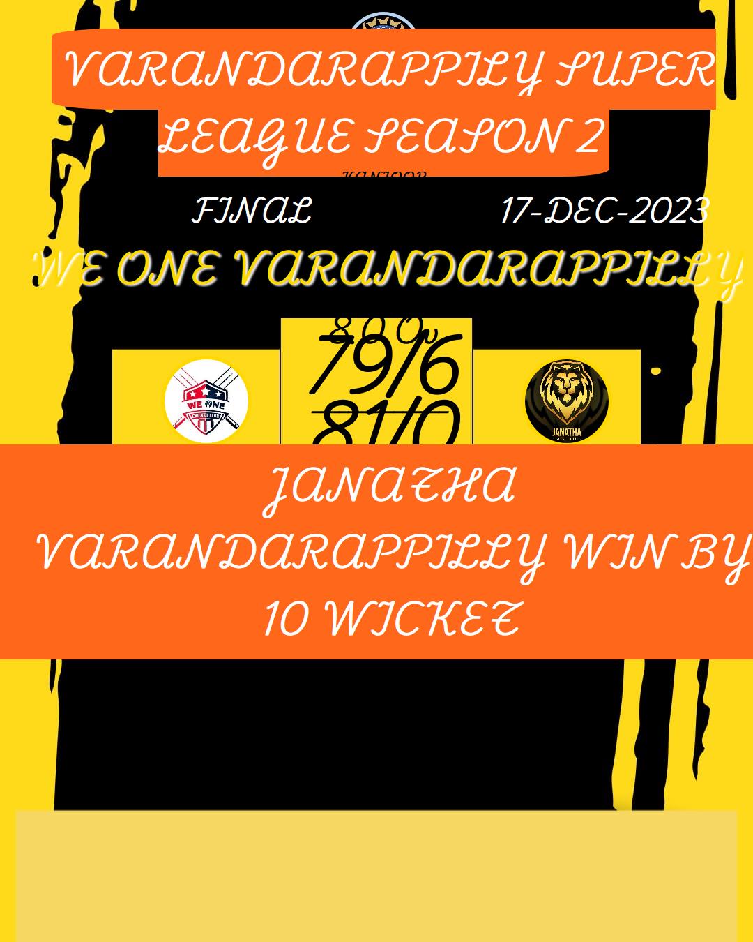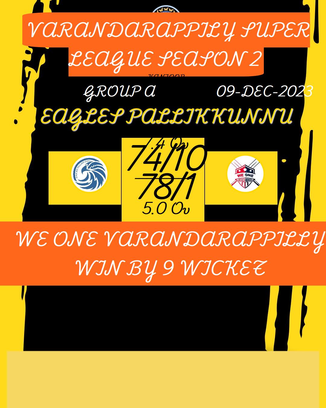 WE ONE VARANDARAPPILLY WIN BY 9 WICKET