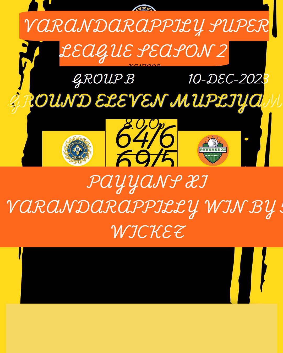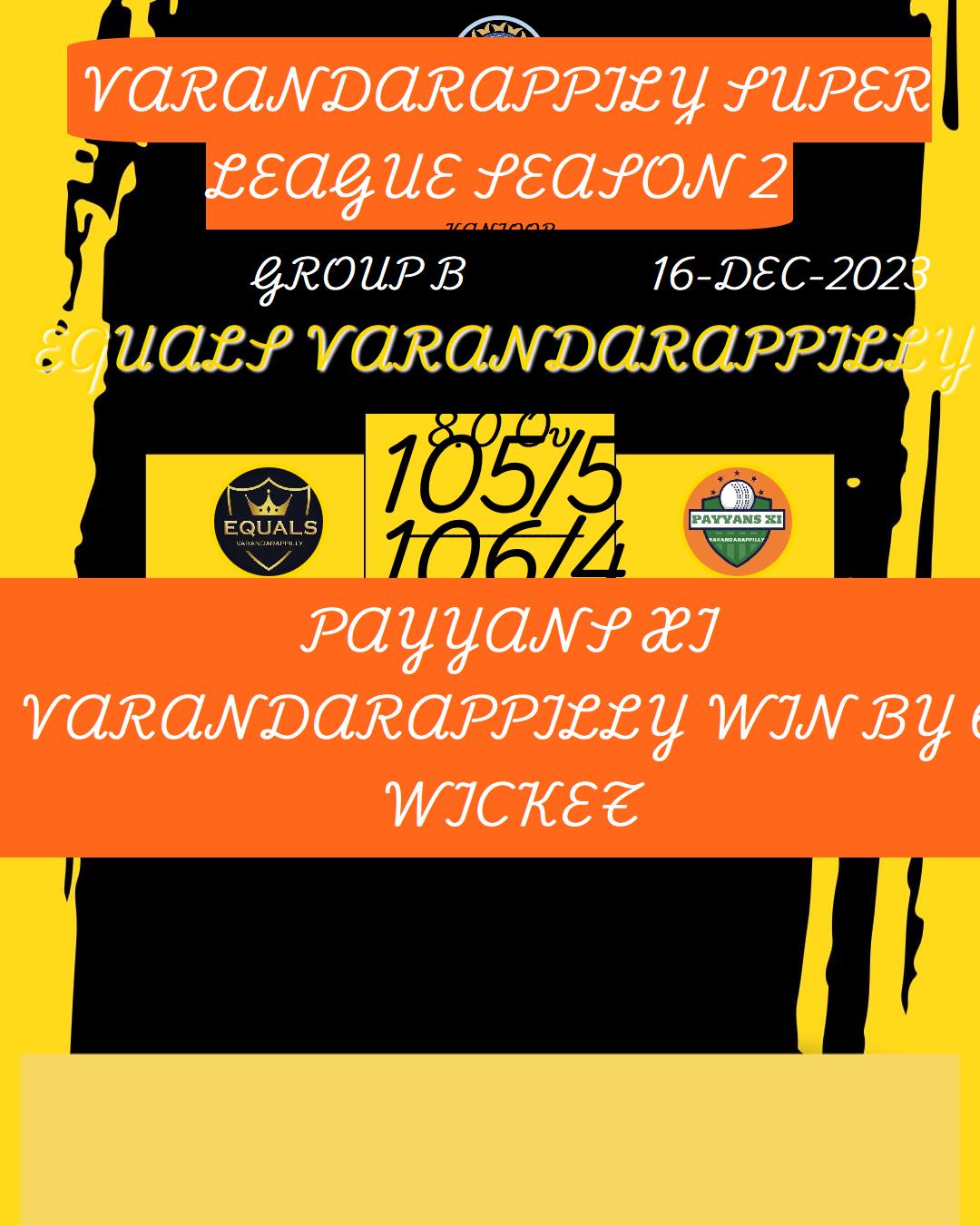 PAYYANS XI VARANDARAPPILLY WIN BY 6 WICKET