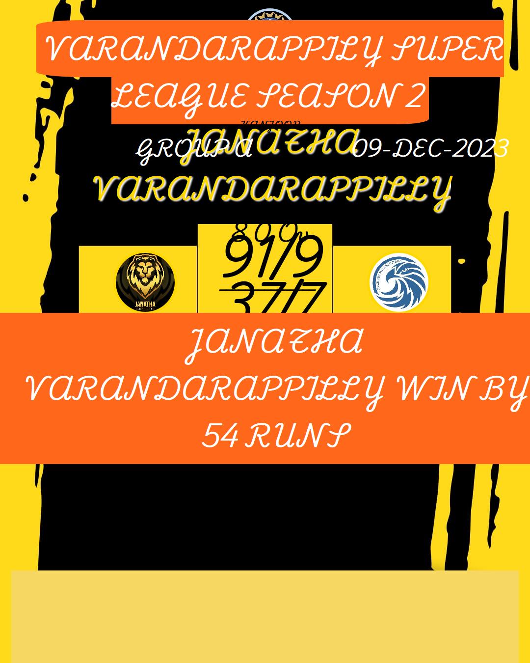 JANATHA VARANDARAPPILLY WIN BY 54 RUNS