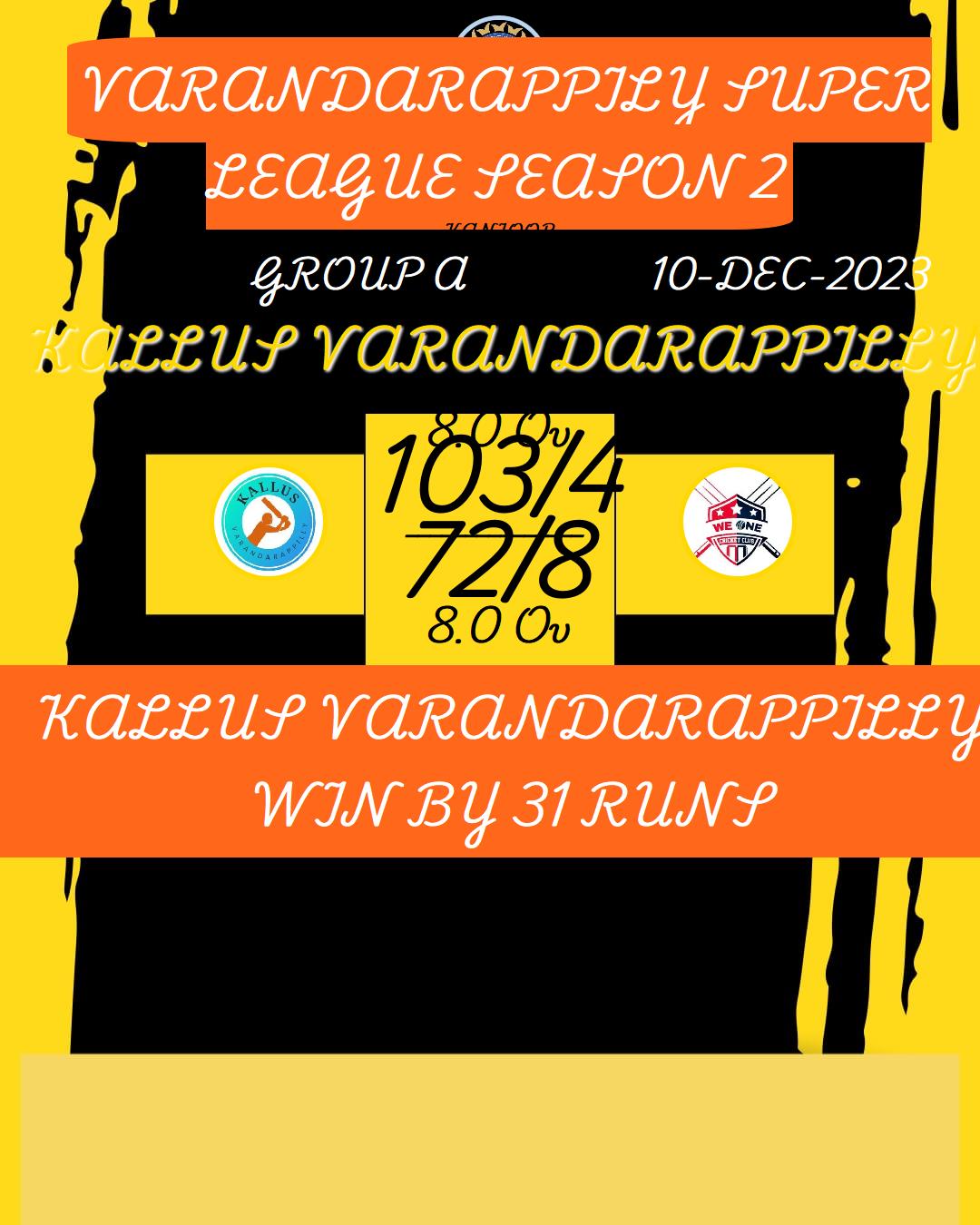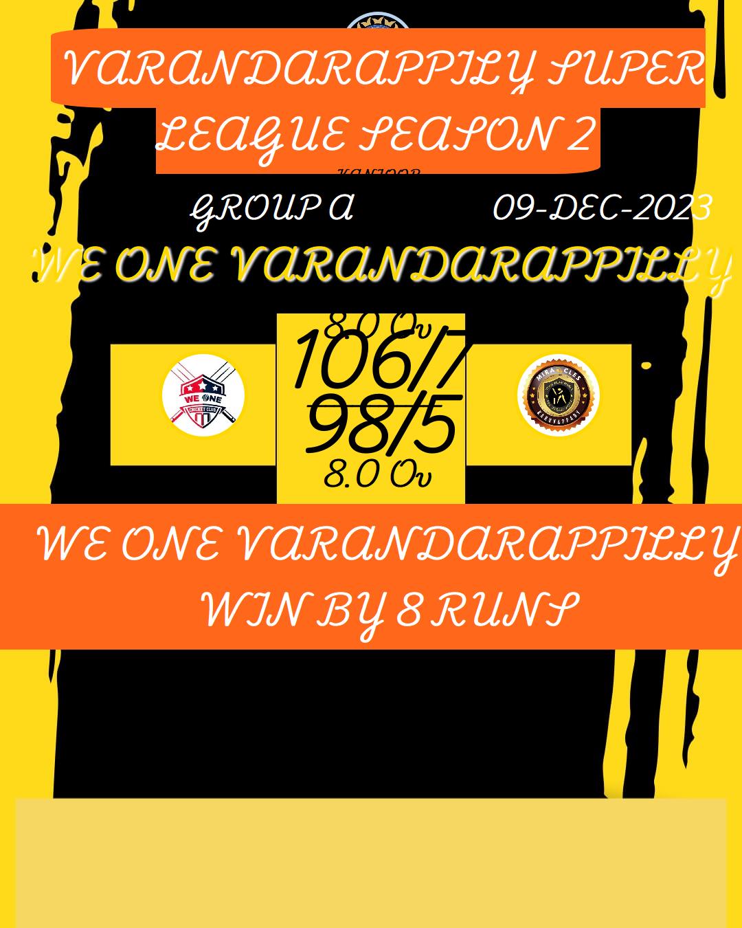 WE ONE VARANDARAPPILLY WIN BY 8 RUNS