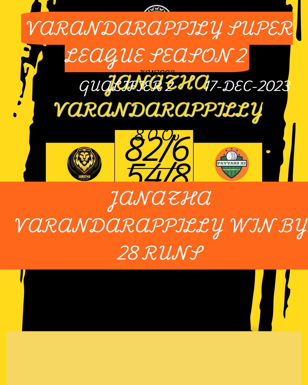 JANATHA VARANDARAPPILLY WIN BY 28 RUNS