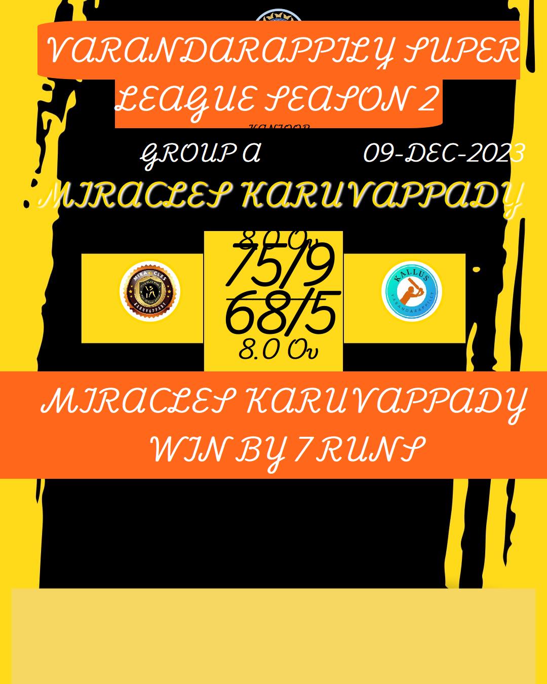 MIRACLES KARUVAPPADY WIN BY 7 RUNS