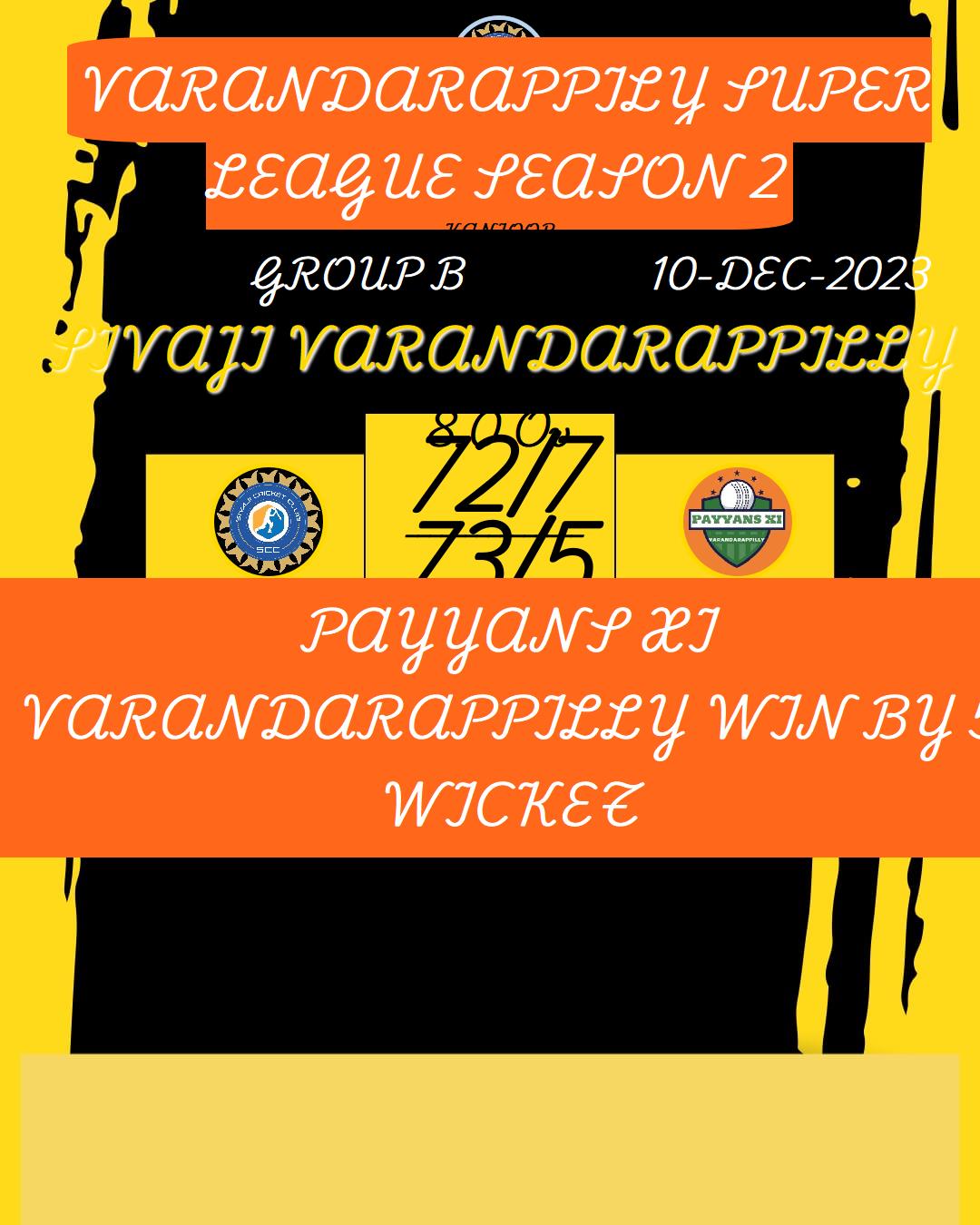 PAYYANS XI VARANDARAPPILLY WIN BY 5 WICKET