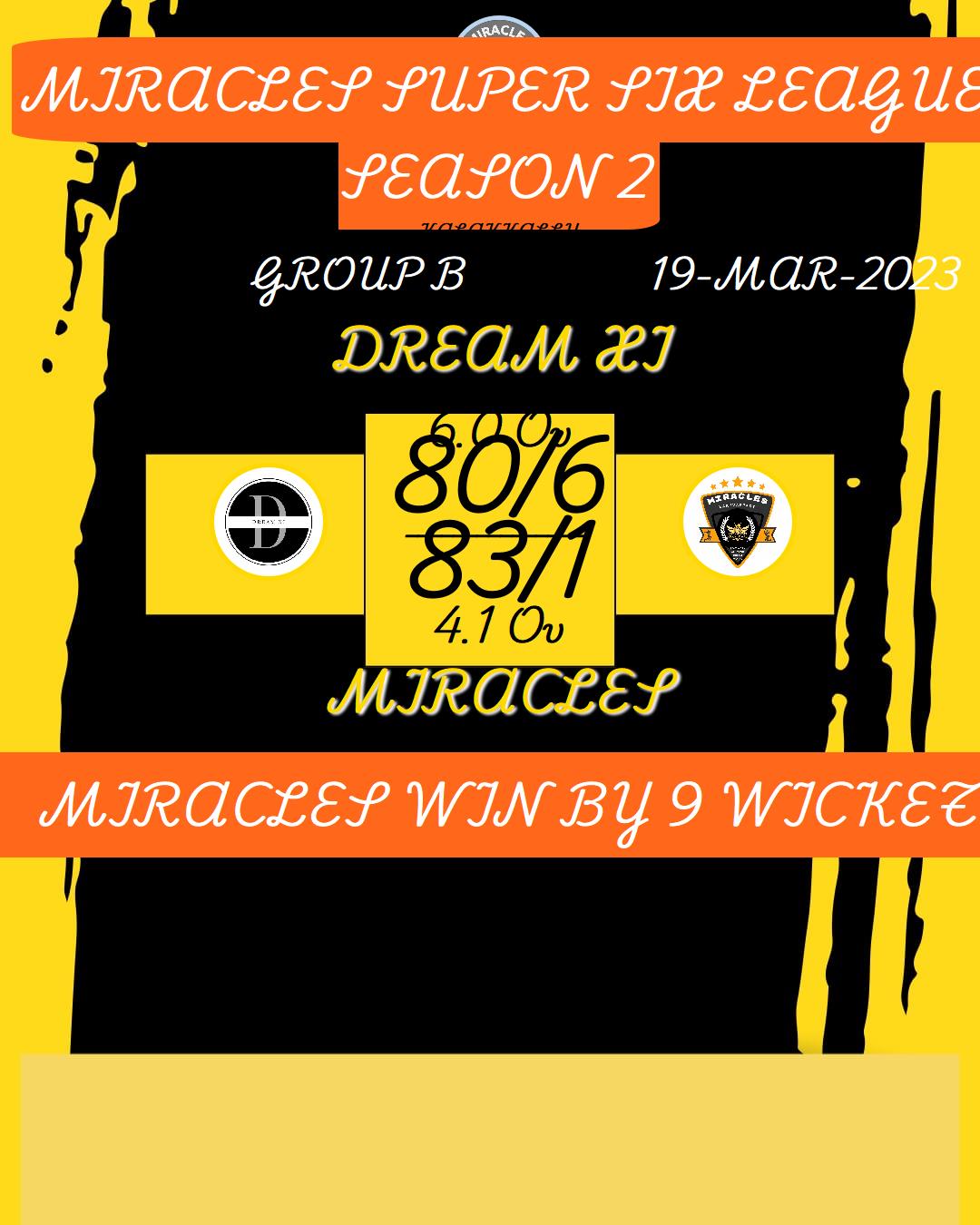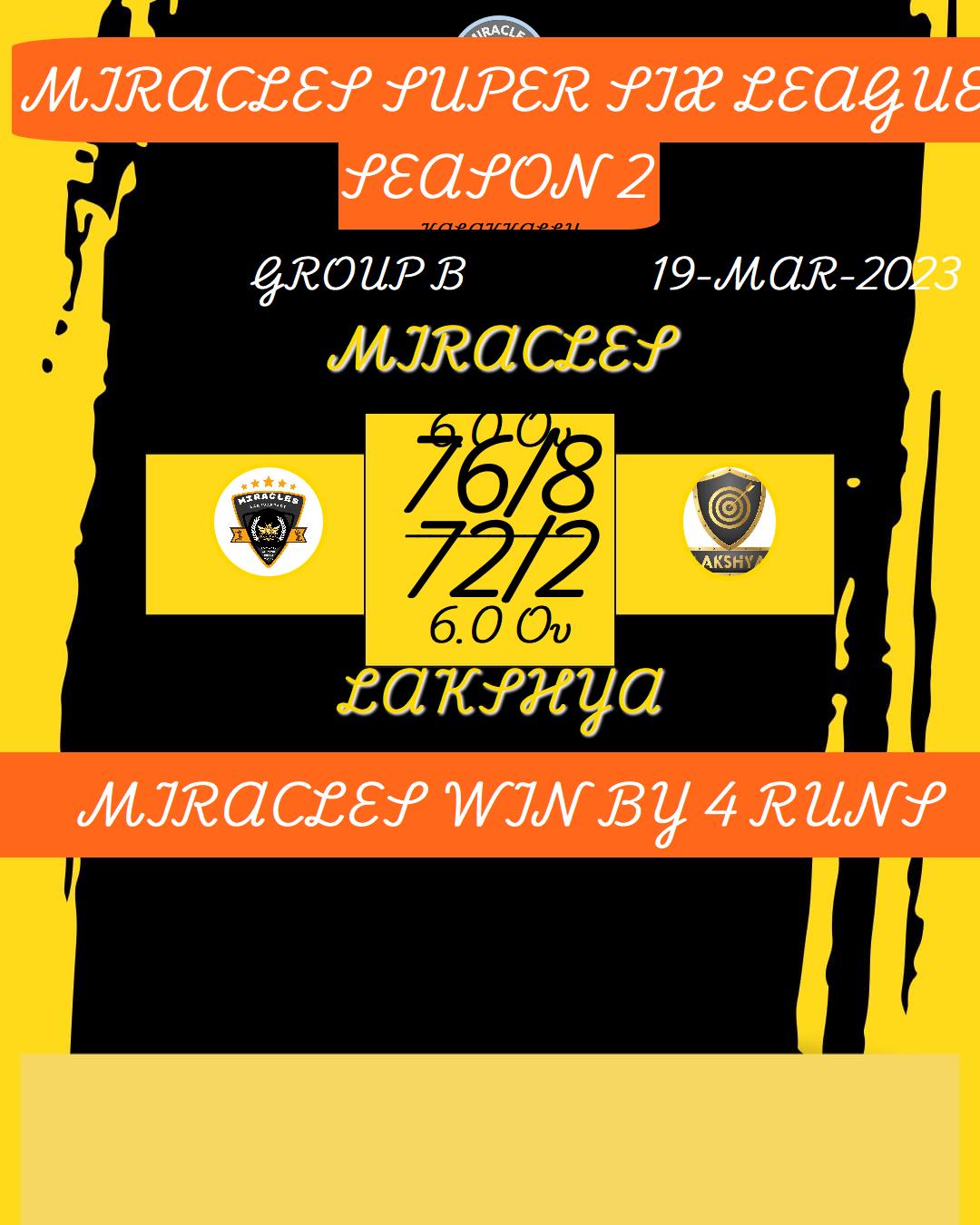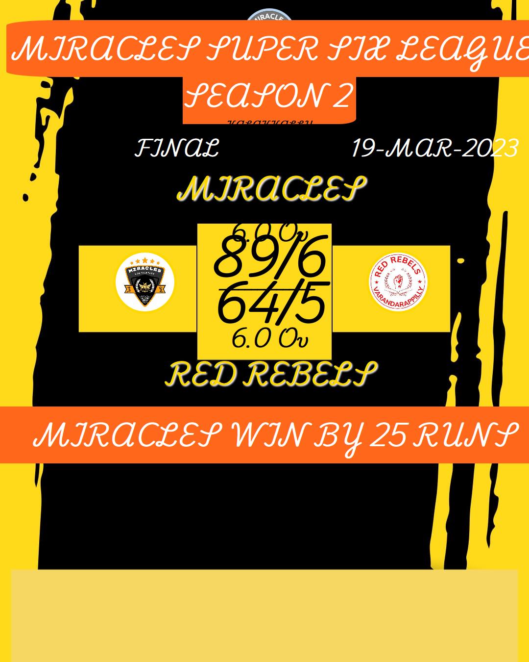MIRACLES SUPER SIX LEAGUE SEASON 2 MATCHES
