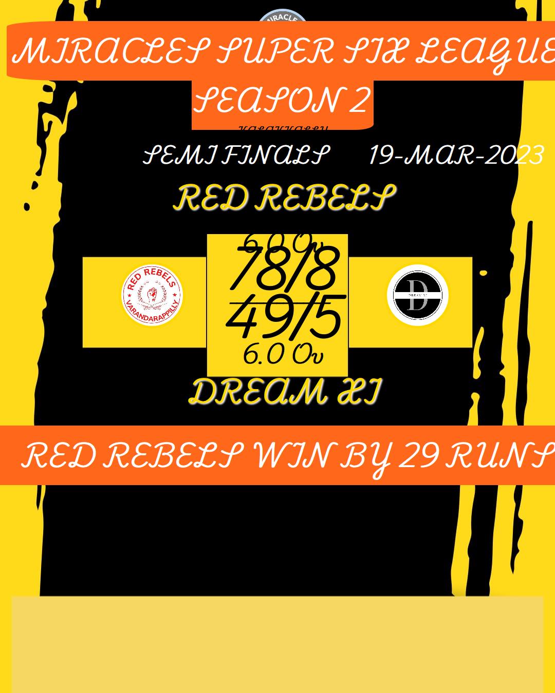 RED REBELS WIN BY 6 WICKET
