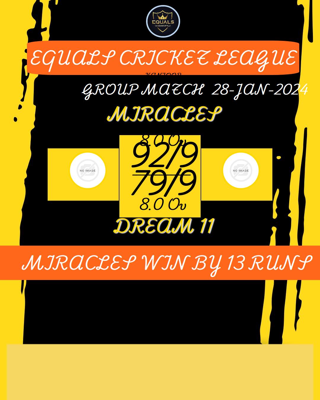 MIRACLES WIN BY 13 RUNS