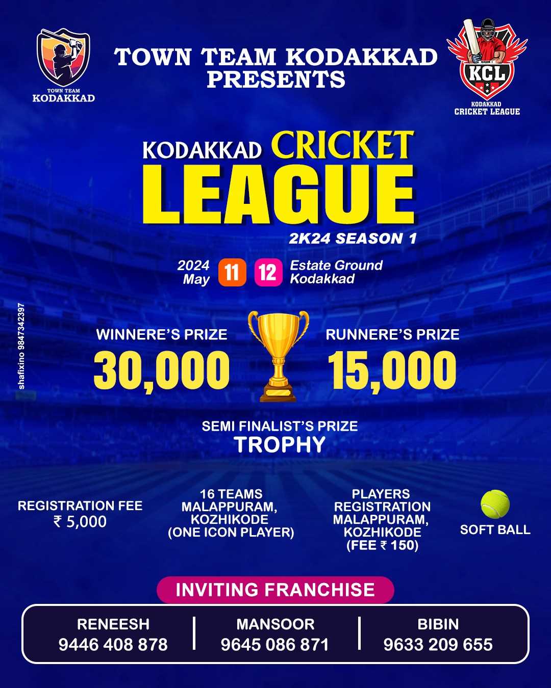KODAKKAD CRICKET LEAGUE (ONLY MALAPPPURAM, KOZHIKODE PLAYER) |