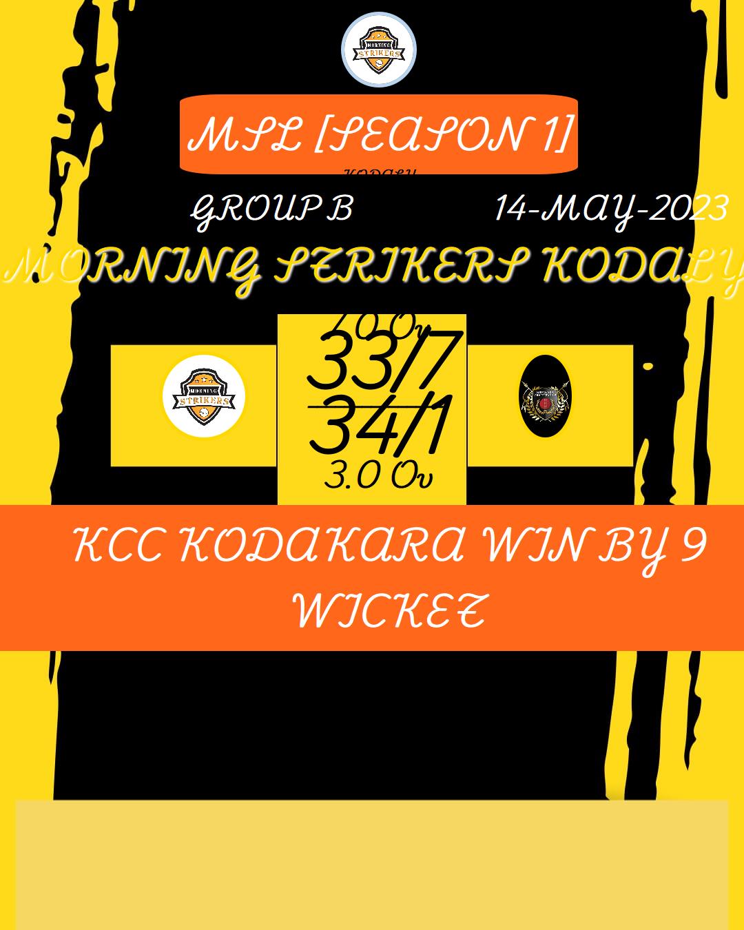 MORNING STRIKERS KODALY. WIN BY 26 RUNS