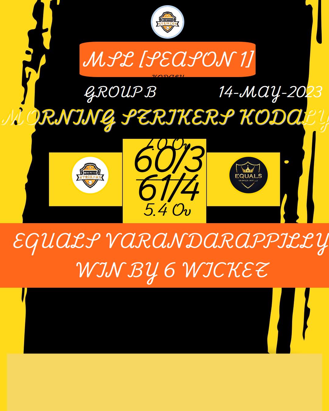 EQUALS VARANDARAPPILLY WIN BY 6 WICKET