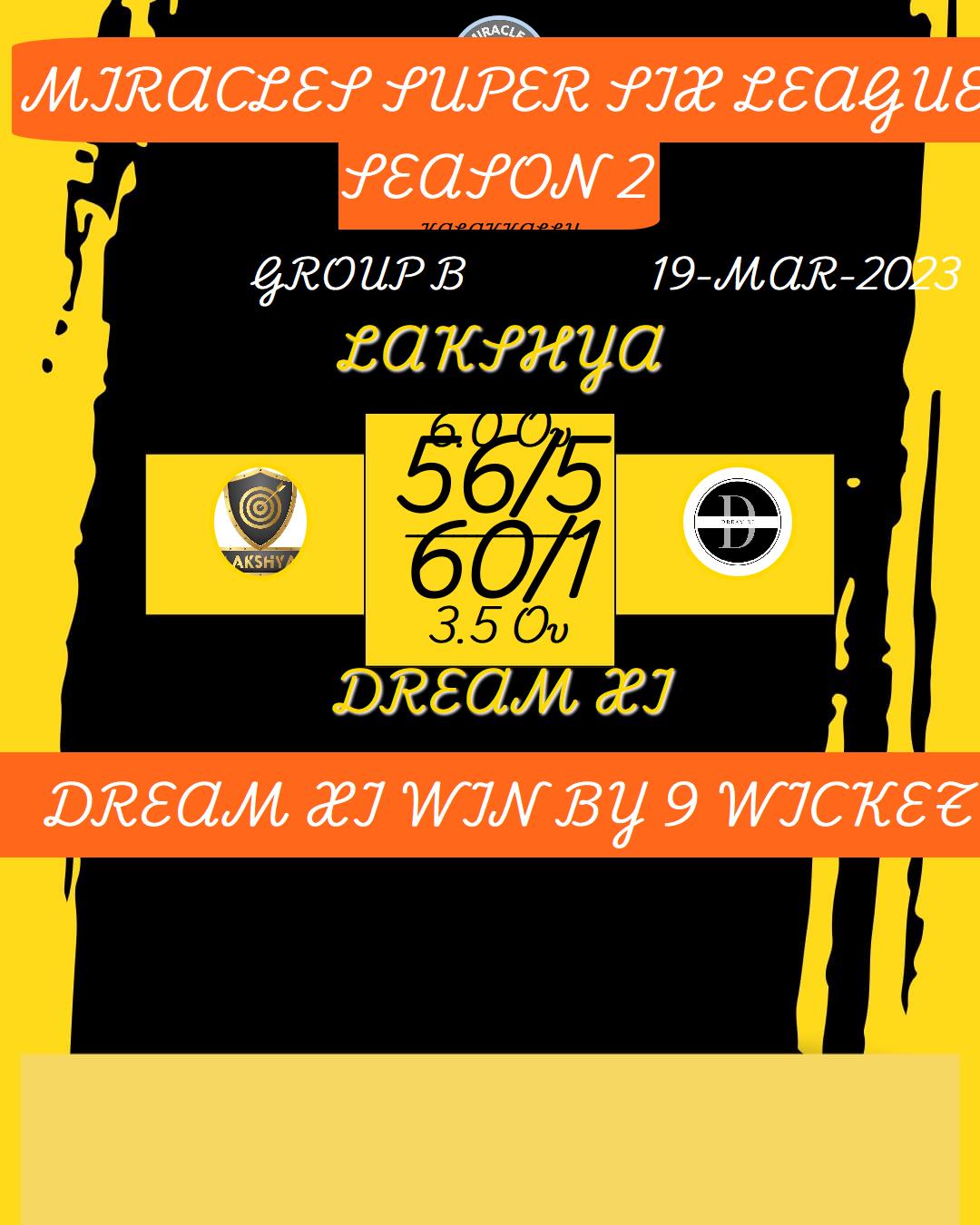 LAKSHYA (MIRACLES SUPER SIX LEAGUE SEASON 2) MATCHES