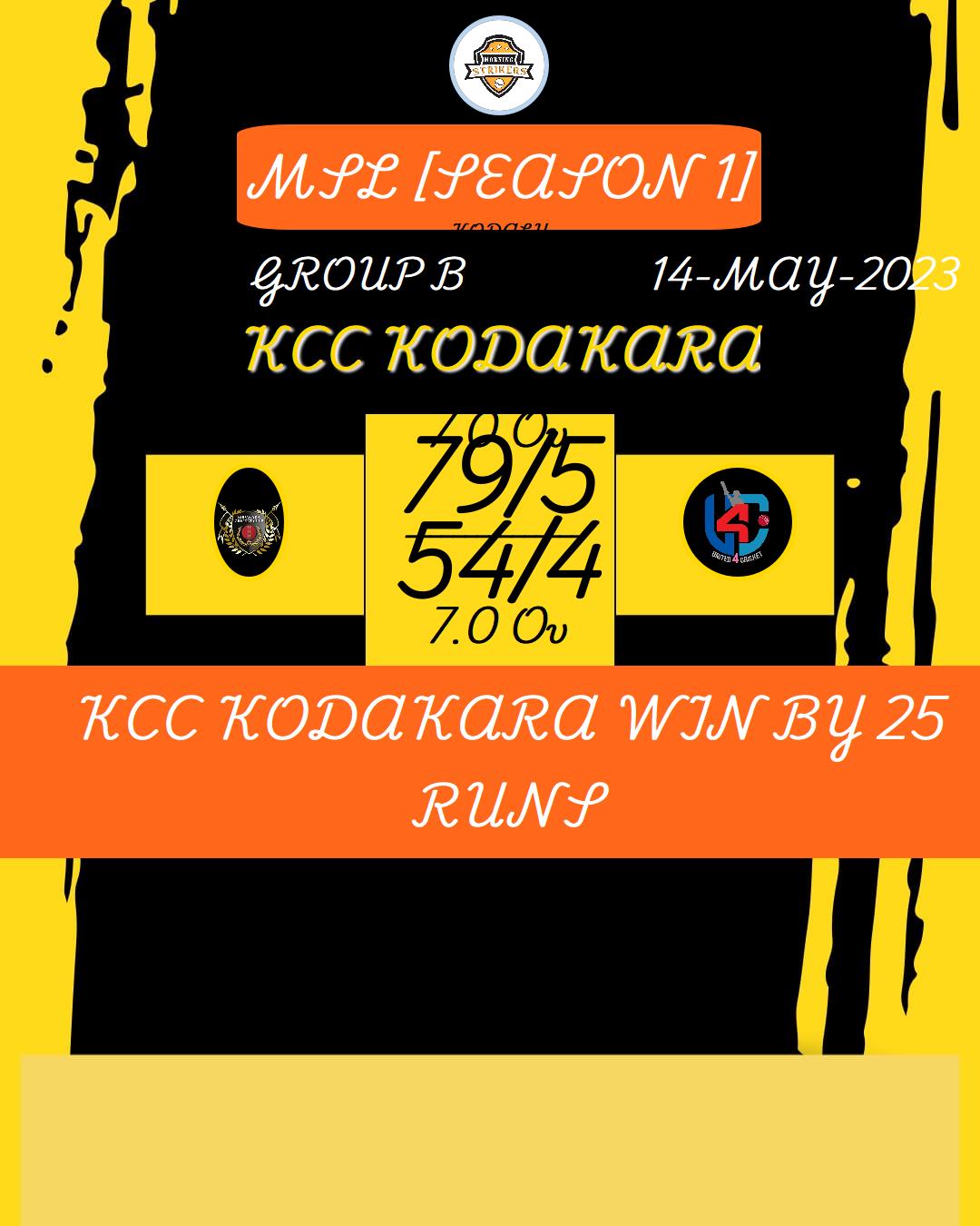 KCC KODAKARA WIN BY 25 RUNS
