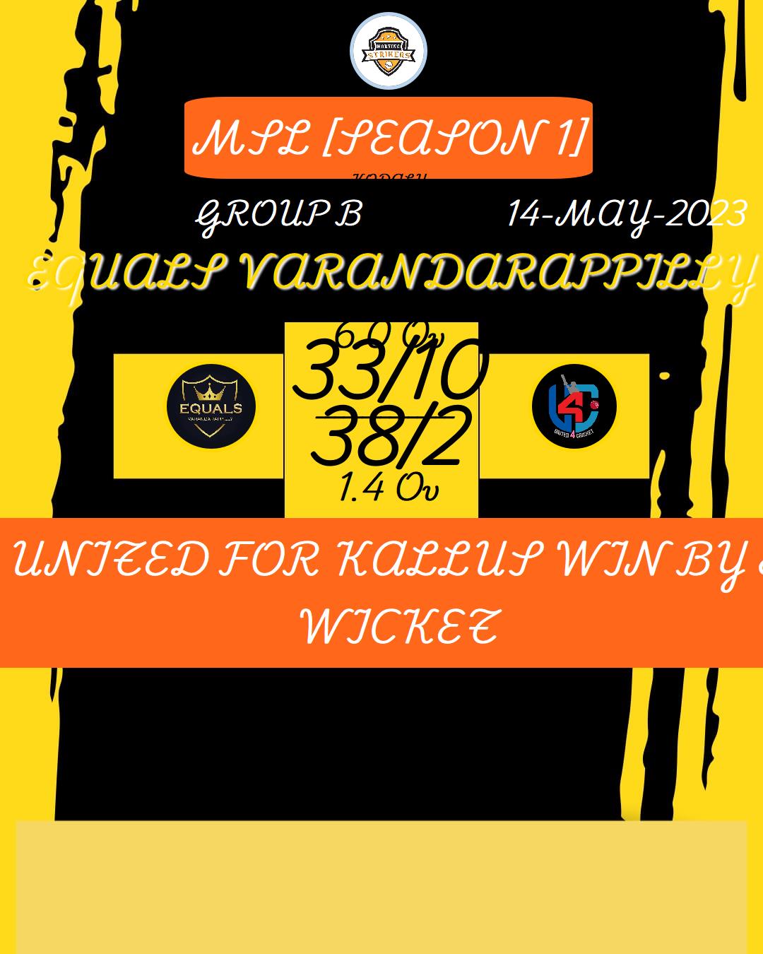 UNITED FOR KALLUS WIN BY 8 WICKET
