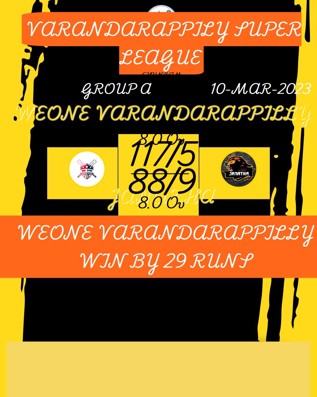 WEONE VARANDARAPPILLY WIN BY 29 RUNS