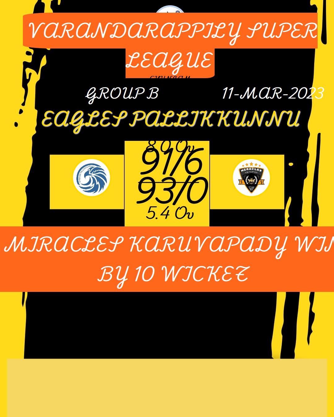 MIRACLES KARUVAPADY WIN BY 10 WICKET
