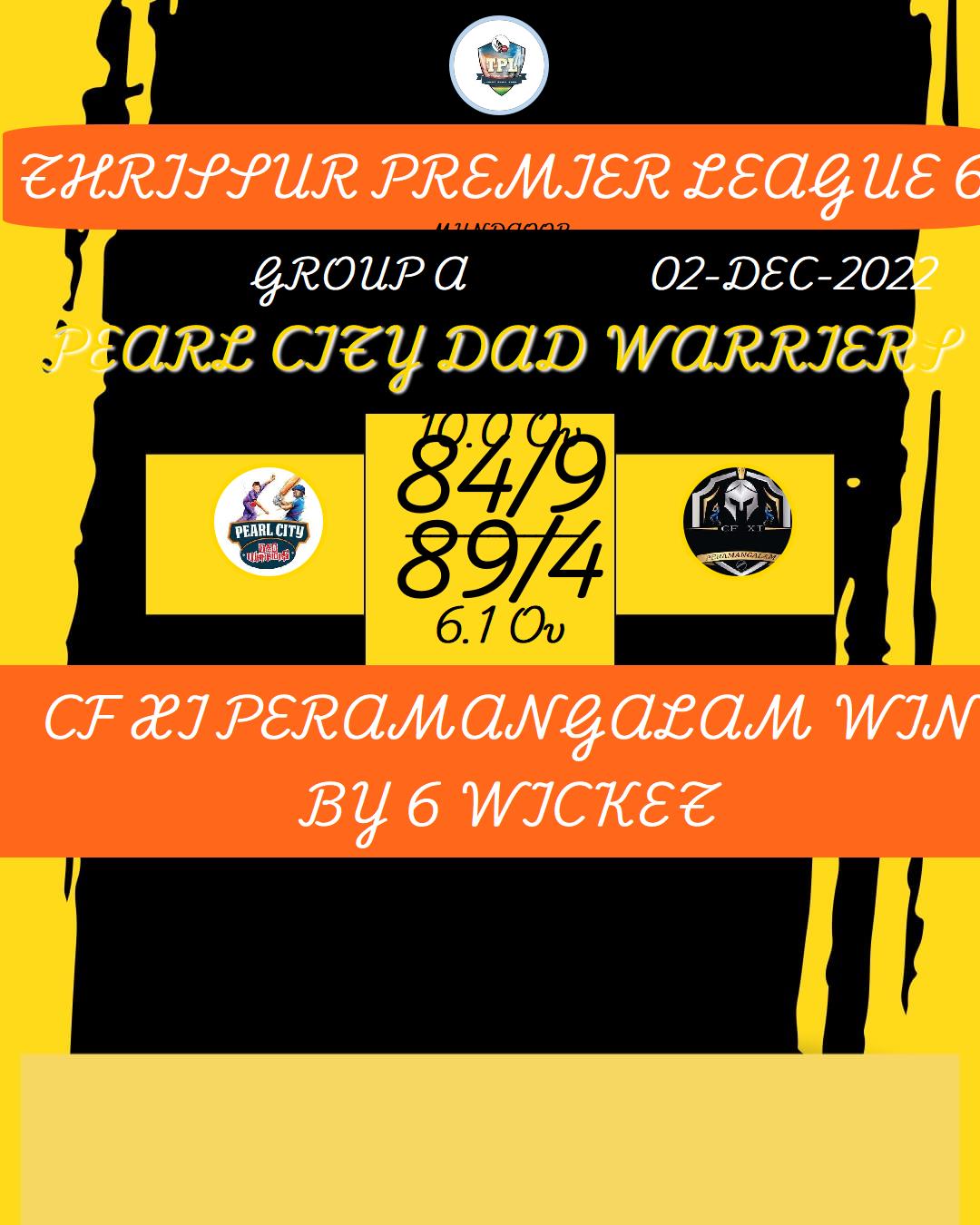 CF XI PERAMANGALAM WIN BY 6 WICKET