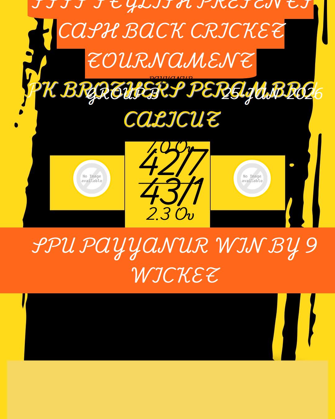 SPU PAYYANUR 43/1 2.3/6 SPU PAYYANUR WIN BY 9 WICKET -
