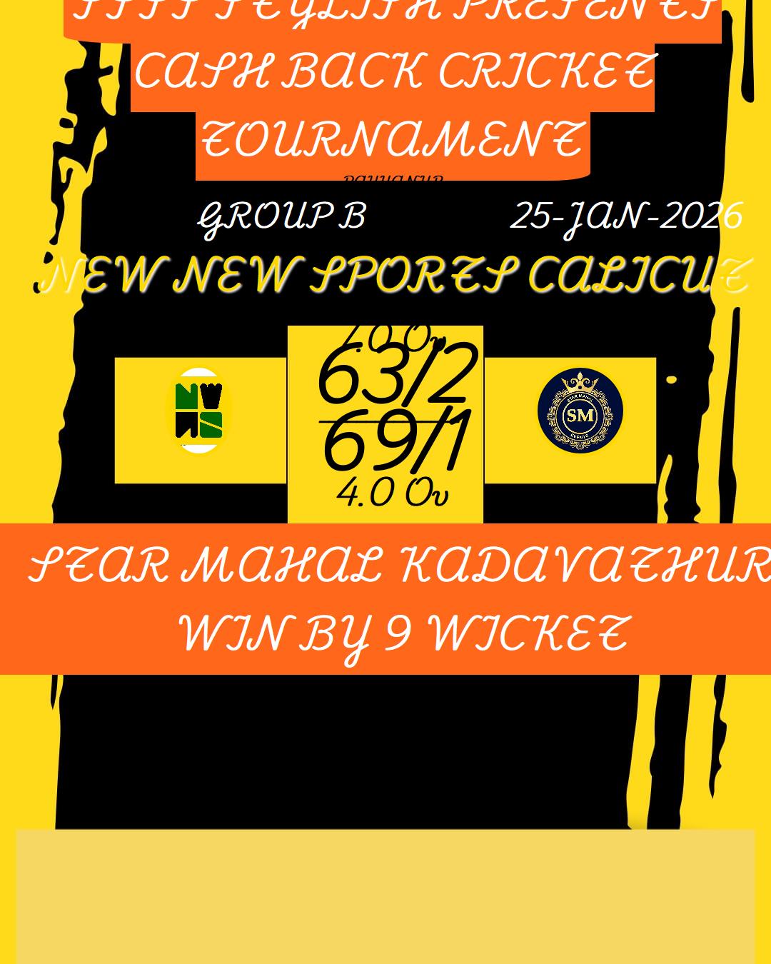 SSSS STYLISH PRESENTS CASH BACK CRICKET TOURNAMENT PAYYANUR , 25-JAN-2026, GROUP B