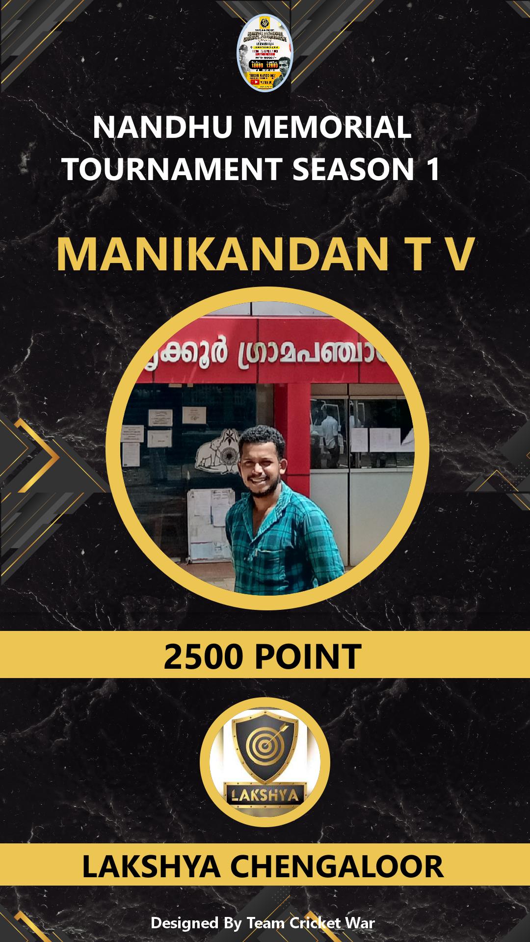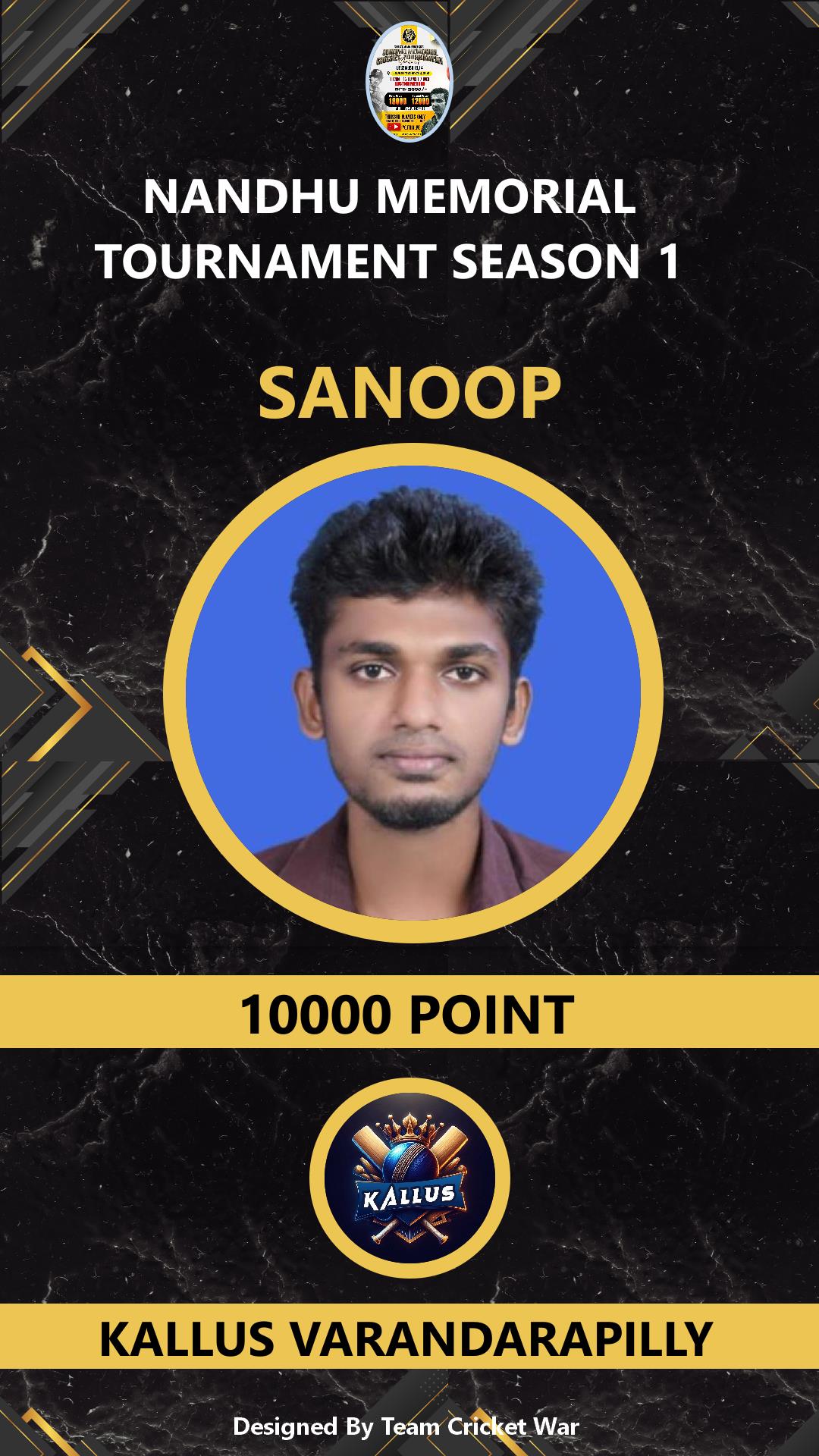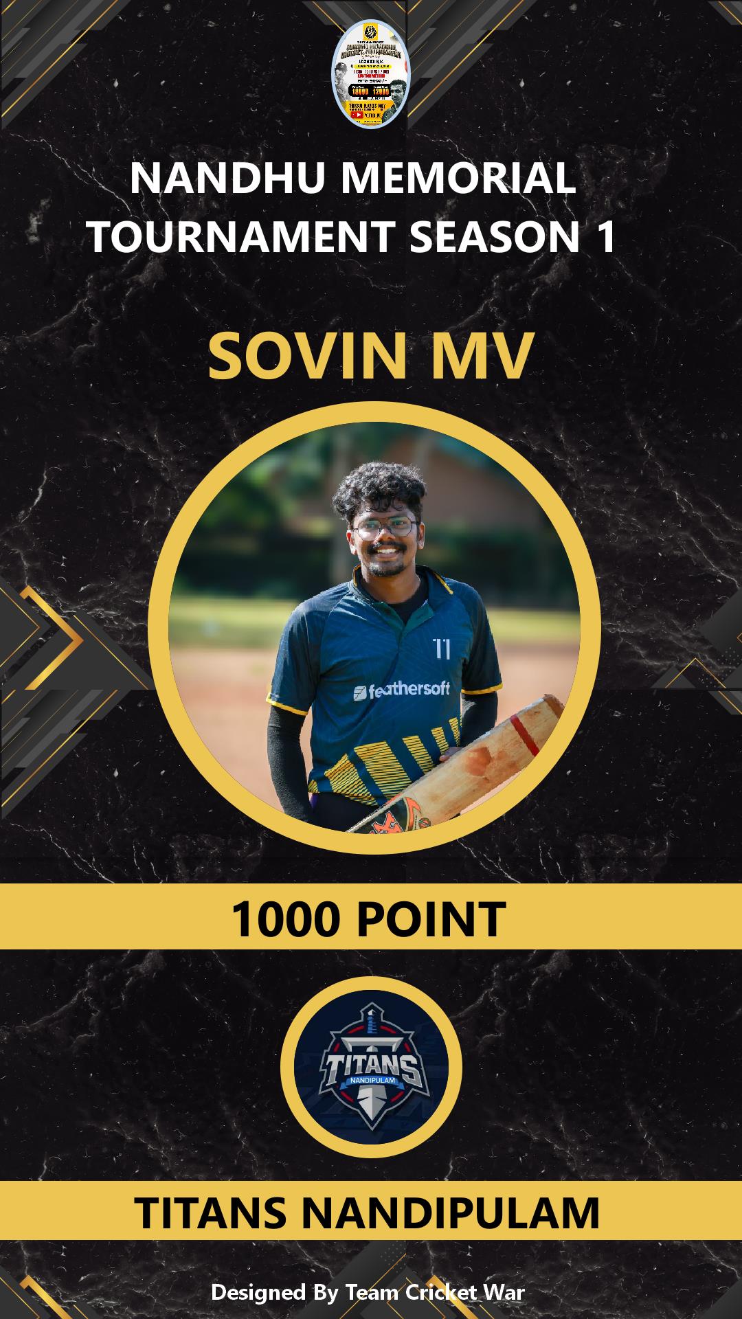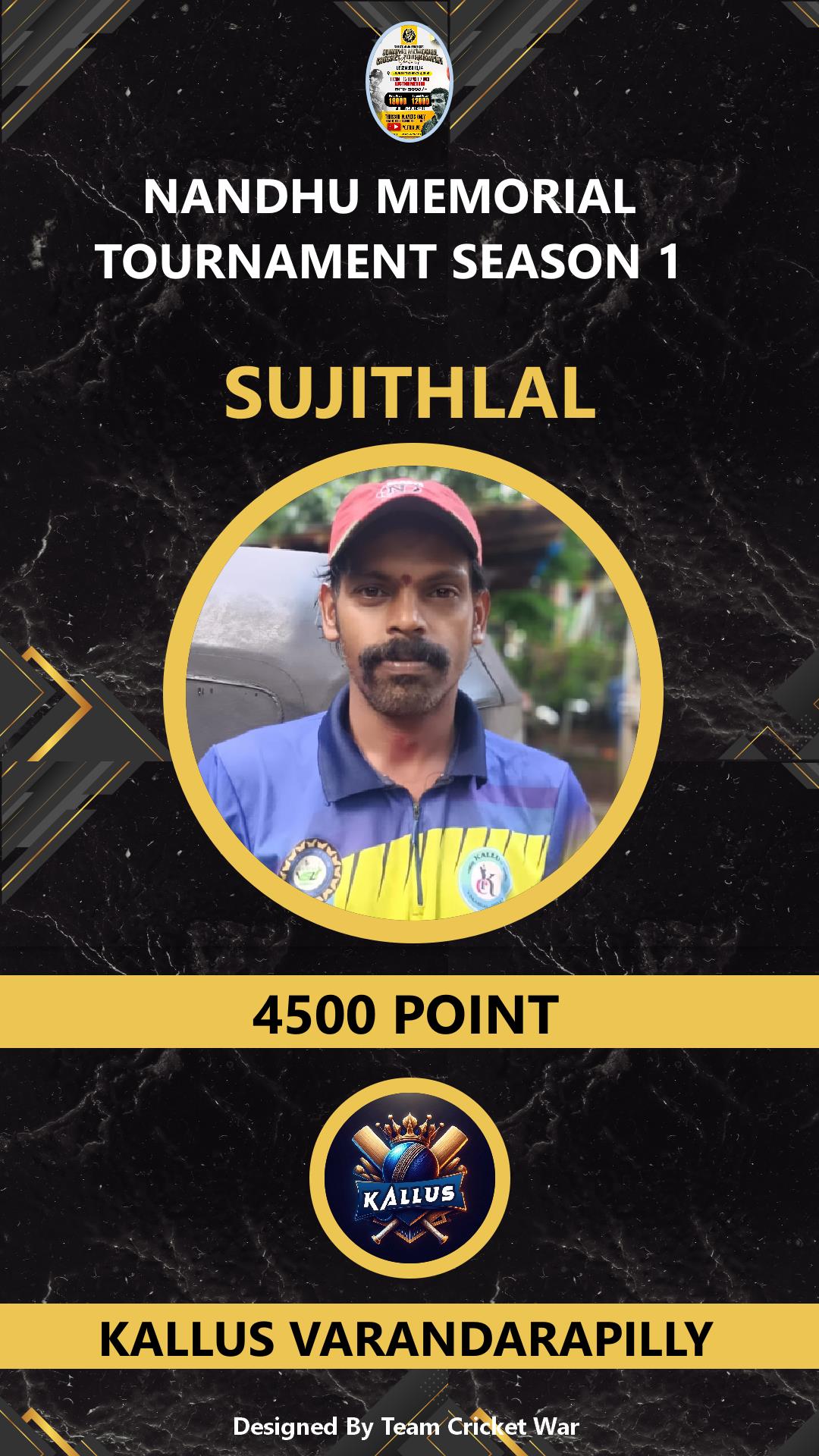 BATTING ALLROUNDER, AGE : 35 PULINJODU Bid Amount : 1000 Team : TITANS NANDIPULAM Download ID Card VIEW PROFILE |