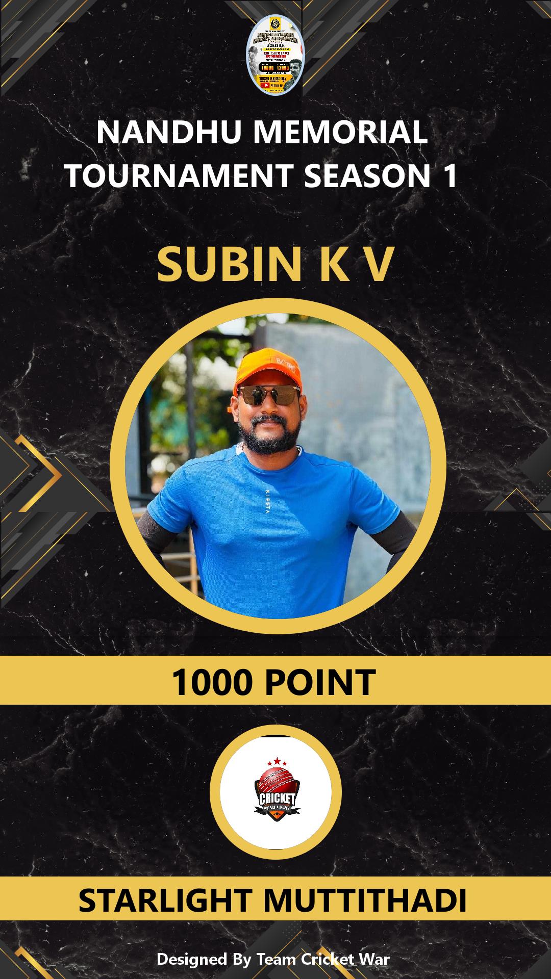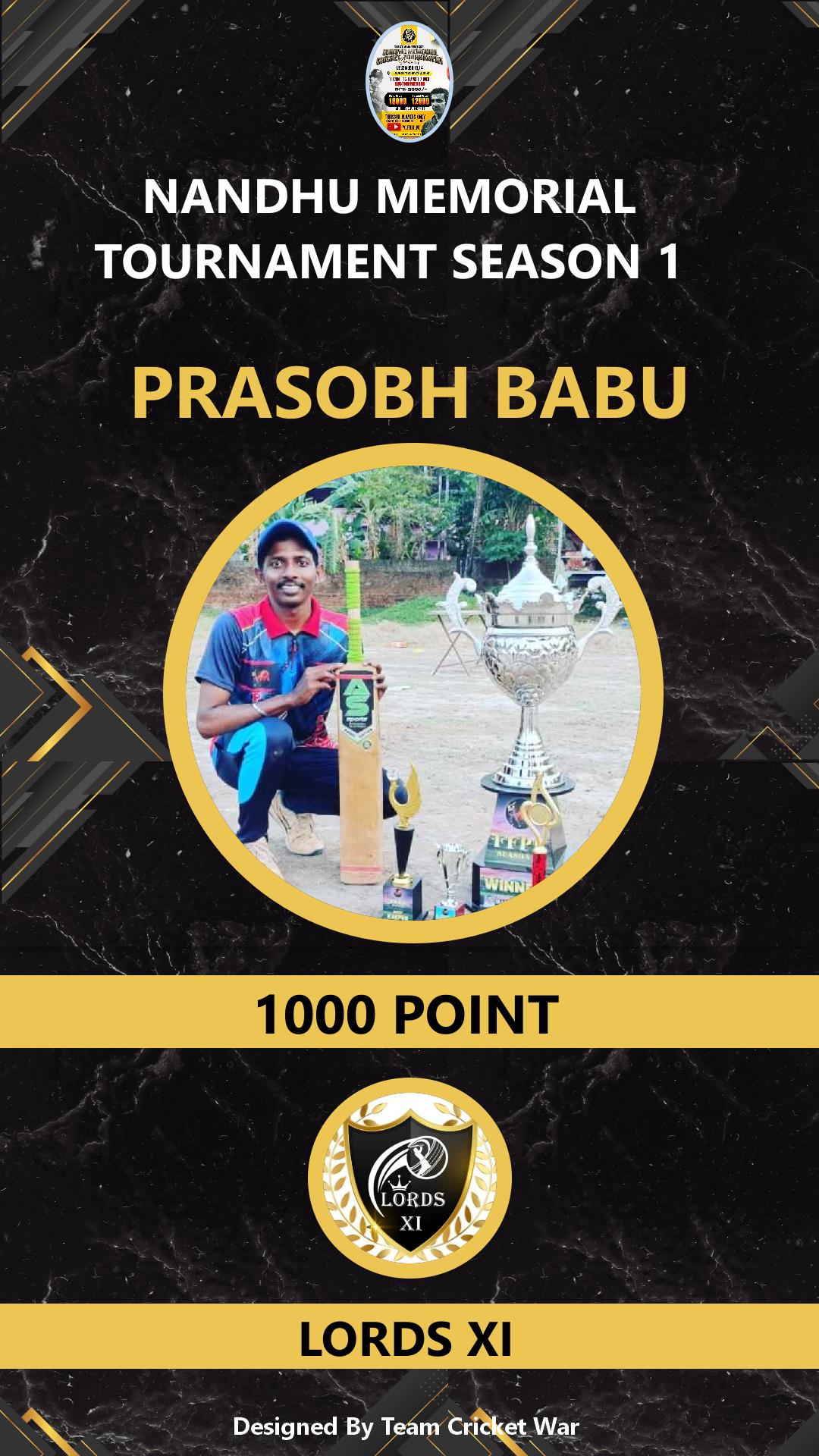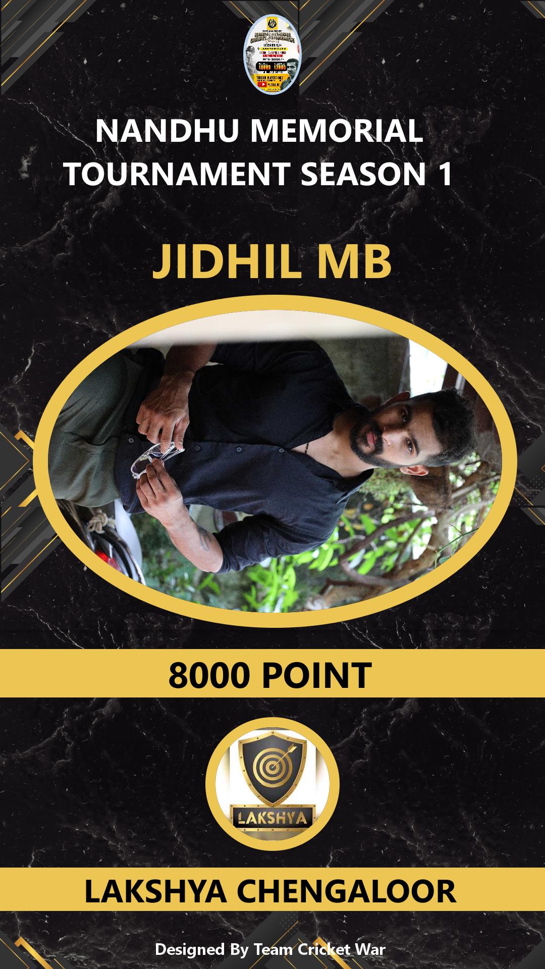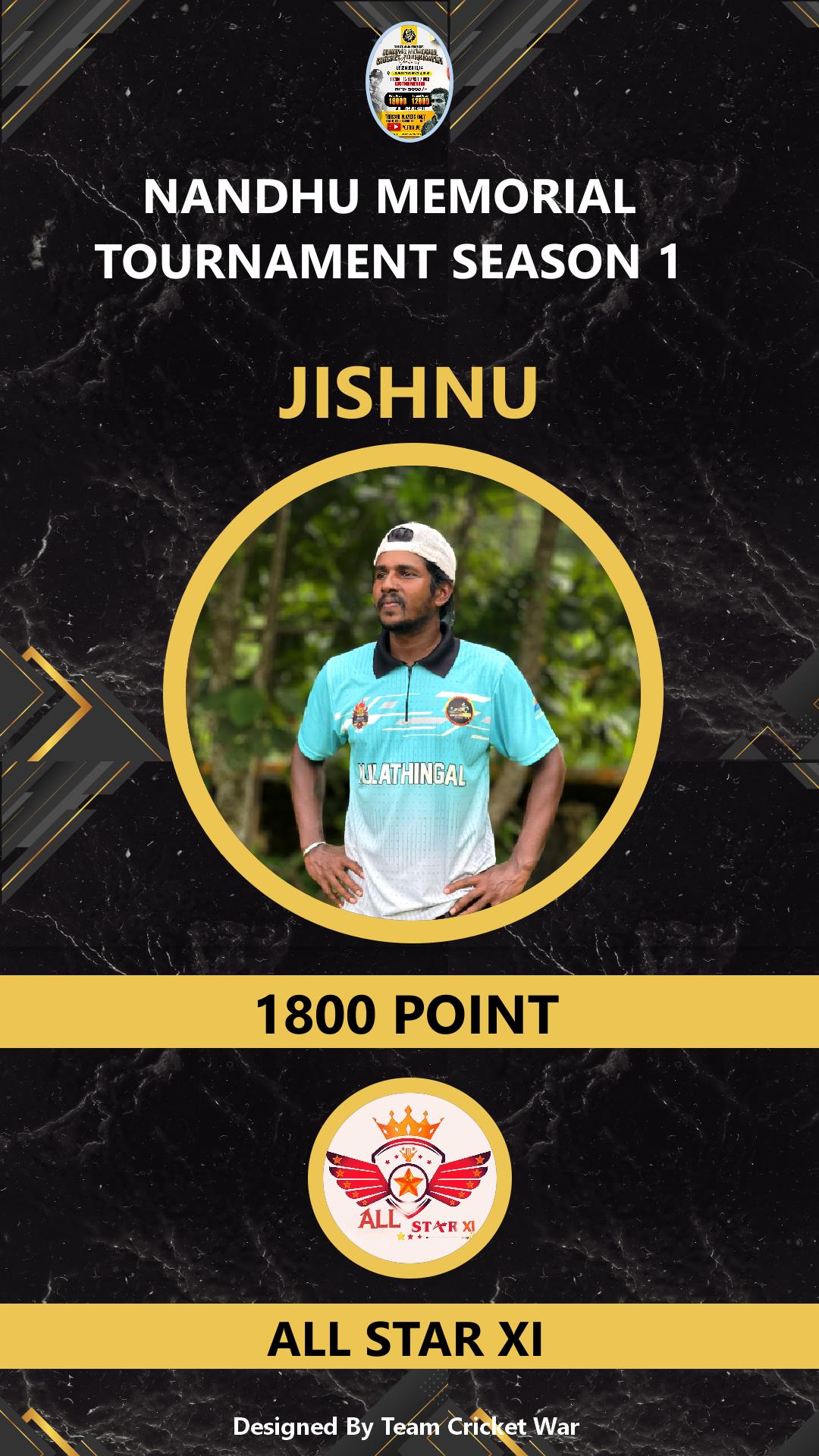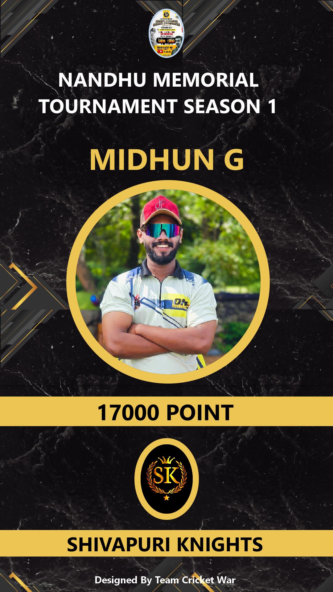 BATTING ALLROUNDER, AGE : 35 PULINJODU Bid Amount : 1000 Team : TITANS NANDIPULAM Download ID Card VIEW PROFILE |